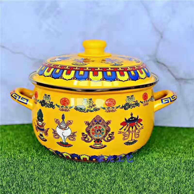 Mongolian features enamel pot enamel enamel deck pot pot household yellow eight bauxi gas general-purpose bubble old-fashioned little pot