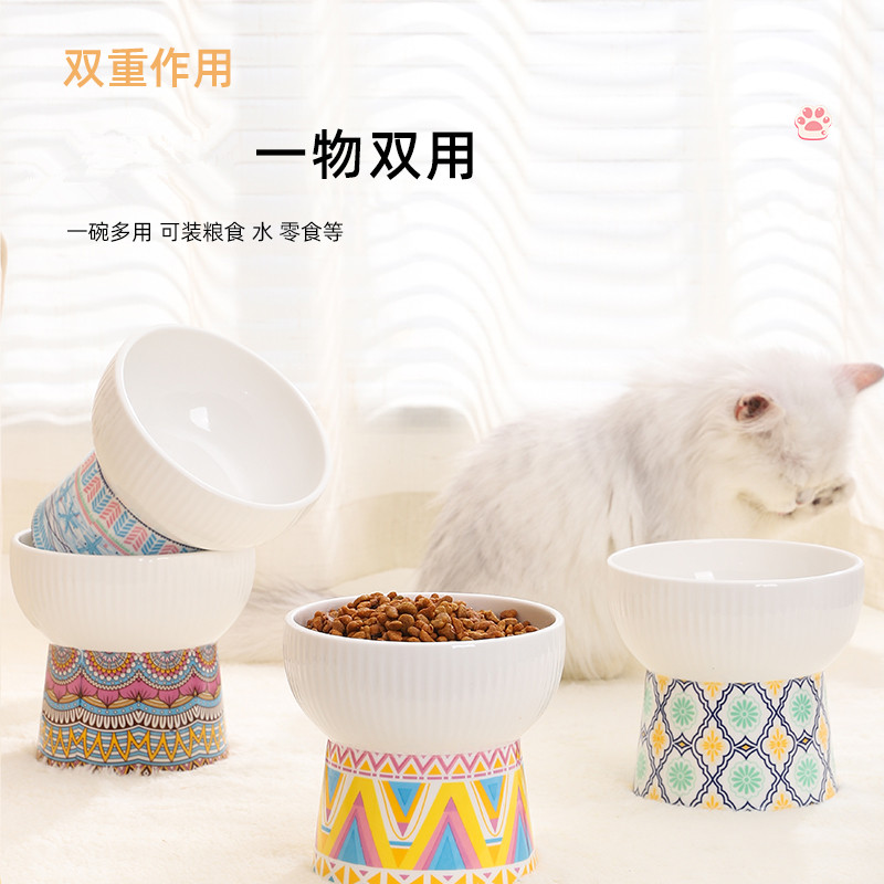 Cute Day-Style Kitty Bowl of Cat Bowls ceramic Drinking Water Bowl Bowl Cat Basin Anti-Black Chin High Foot Neck Protection Pet Bowl