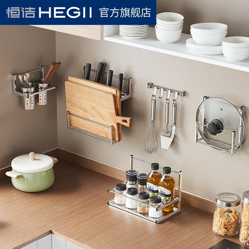 (New Product) HEGII Hengjie Knife Plate Holder Double Layer Seasoning Rack Chopsticks Hook Pot Lid Rack Kitchen Pendant