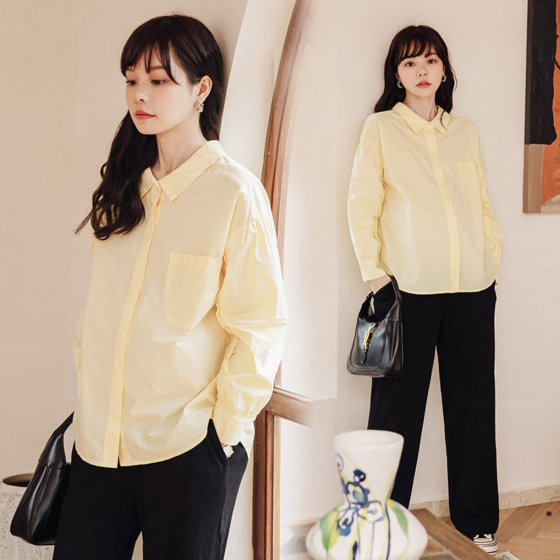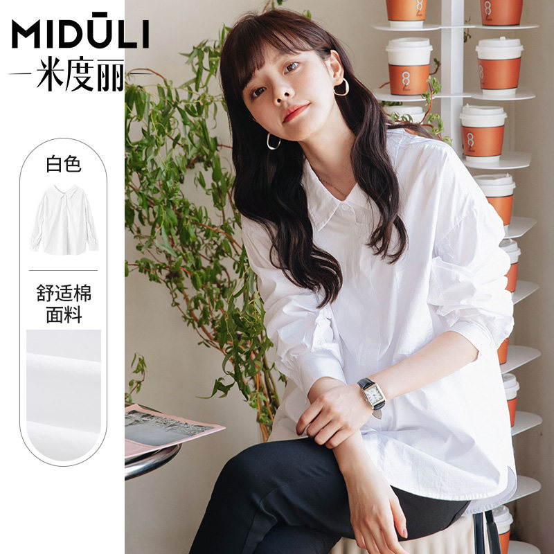 Midori pregnant woman dress spring and autumn thin pregnant woman shirt white shirt loose blouse toilet woman long sleeve dress