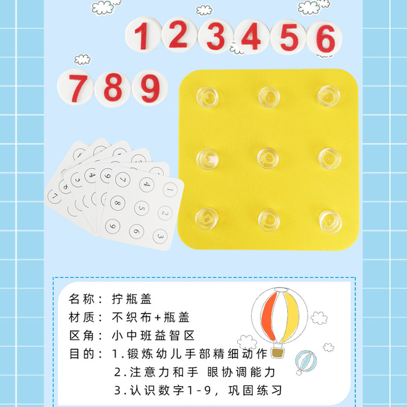 Kindergarten small and medium class puzzle hand fine motor training toy twist bottle cap play teaching aid area corner material
