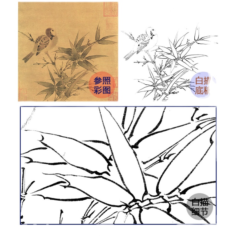 Water ink Qinglian work stroke Song painting Flowers Birds Small Pint White Sketching Manuscript Wu Bingzhu Nestu Nestu Birdtu High-definition Physical printing