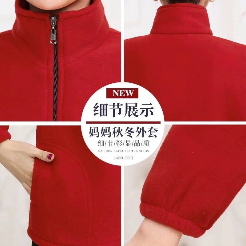 Middle-aged mother loaded with velvet T-rock coat female plus thickened double-sided fluff zipper large size autumn and winter