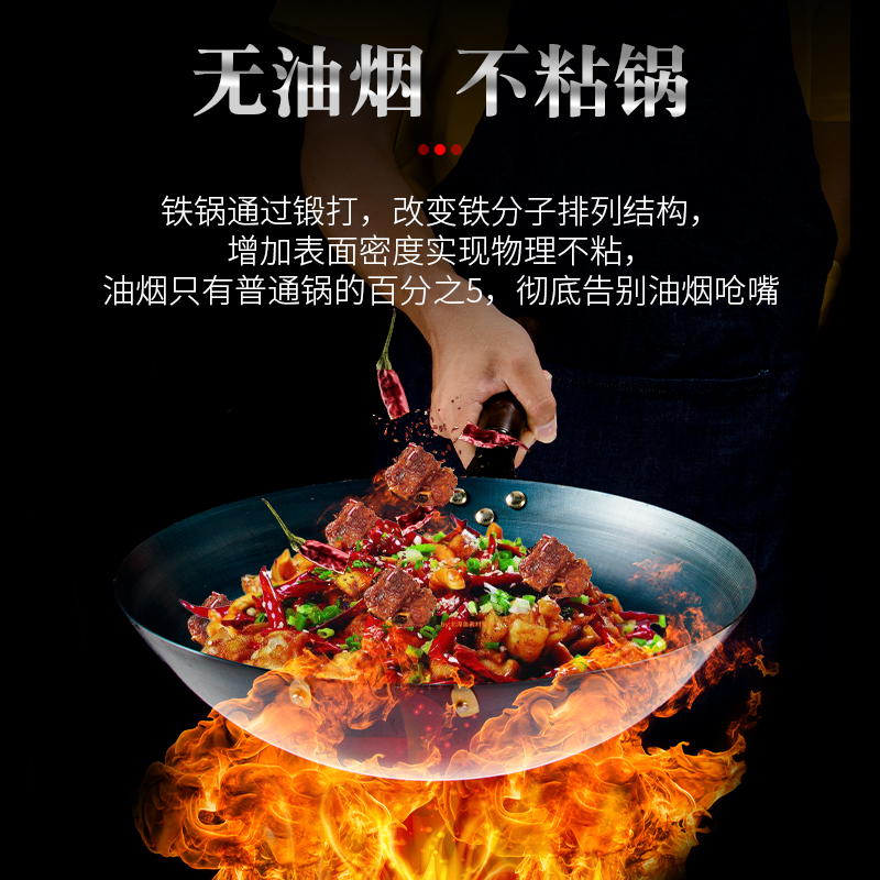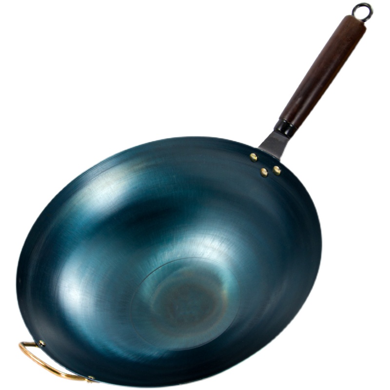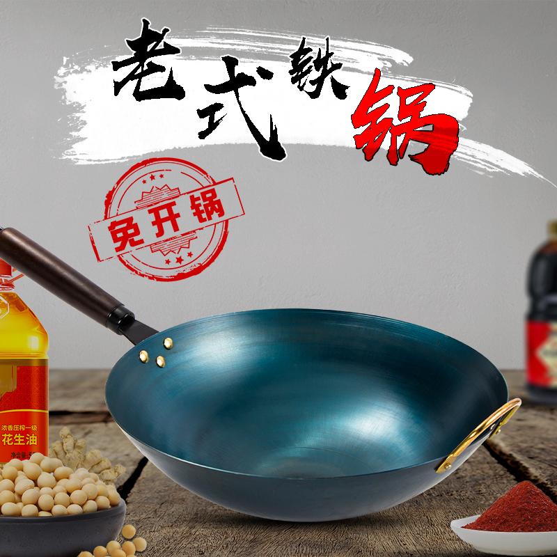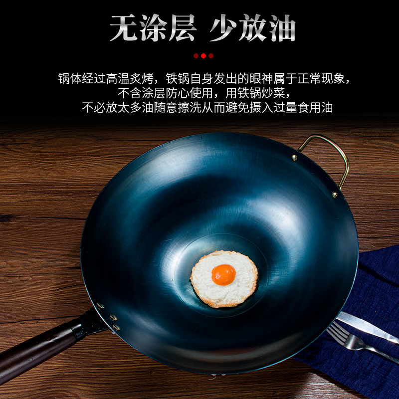 Physical non-stick gas gas stove handmade wooden handle pot uncoated household commercial frying pan iron pot round bottom free pot
