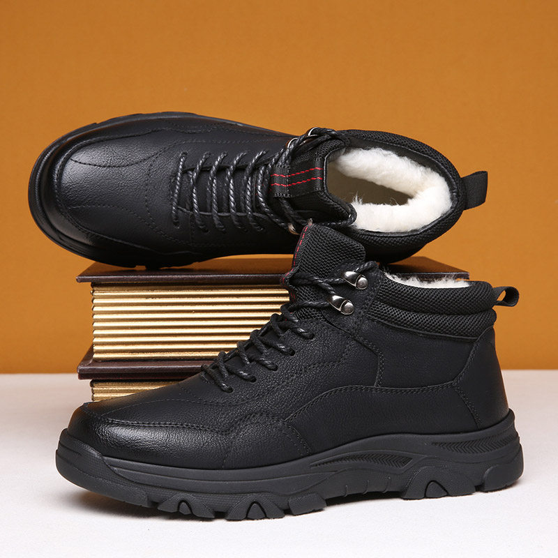 Mulinsen cotton shoes men's high top winter wool plus velvet warm non-slip outdoor sports cotton shoes leather dad shoes