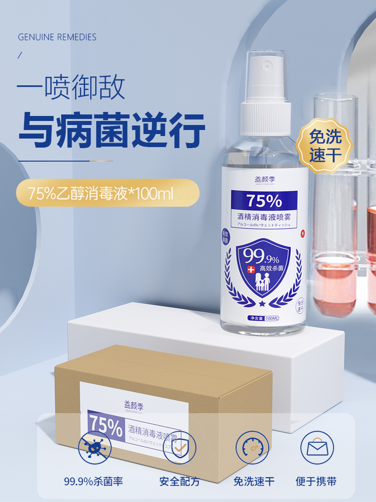 Disinfectant 75% Alcohol spray Domestic germicidal disinfectant portable free hand washing disinfectant 100ML* 3 small bottles