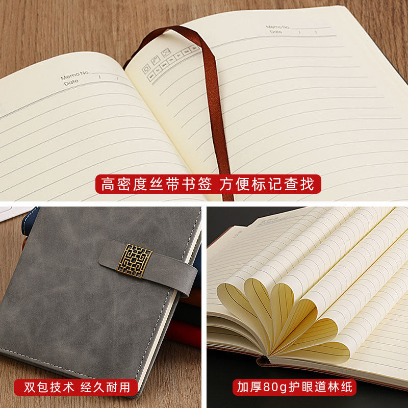 A5 Business Notebook Soft Leather Face Benson Custom Printable Logo Bronzing Gold Cover Inner Page Set Making Print Thickening Office People Notepad Working Meeting Record This University Student Day Note Book
