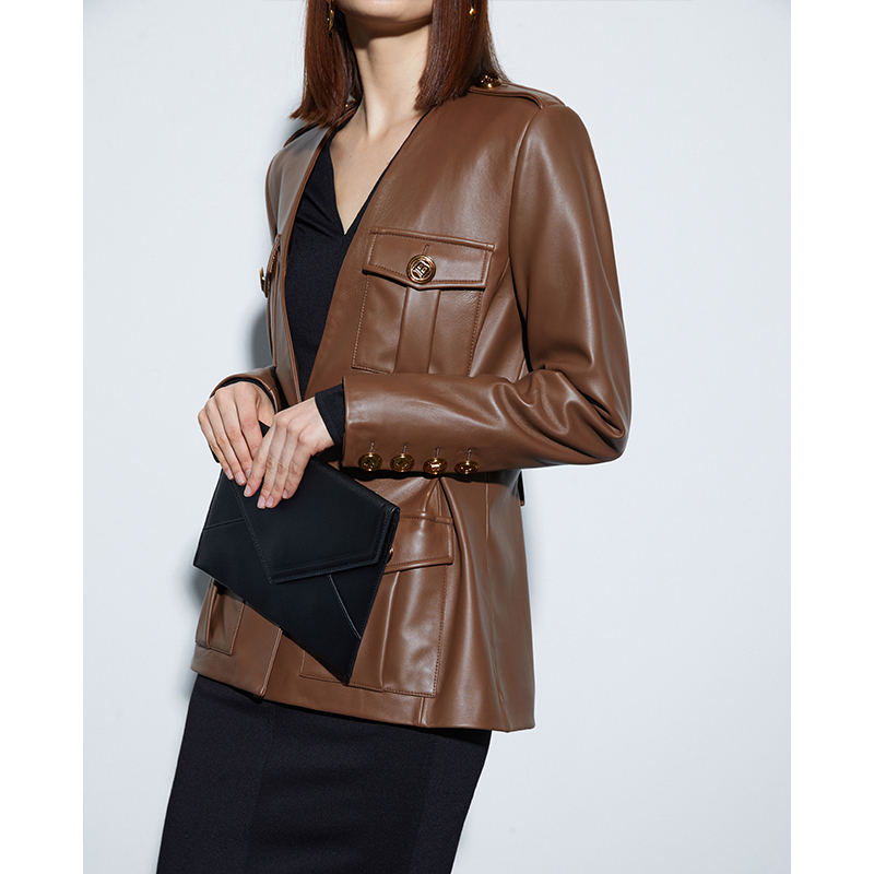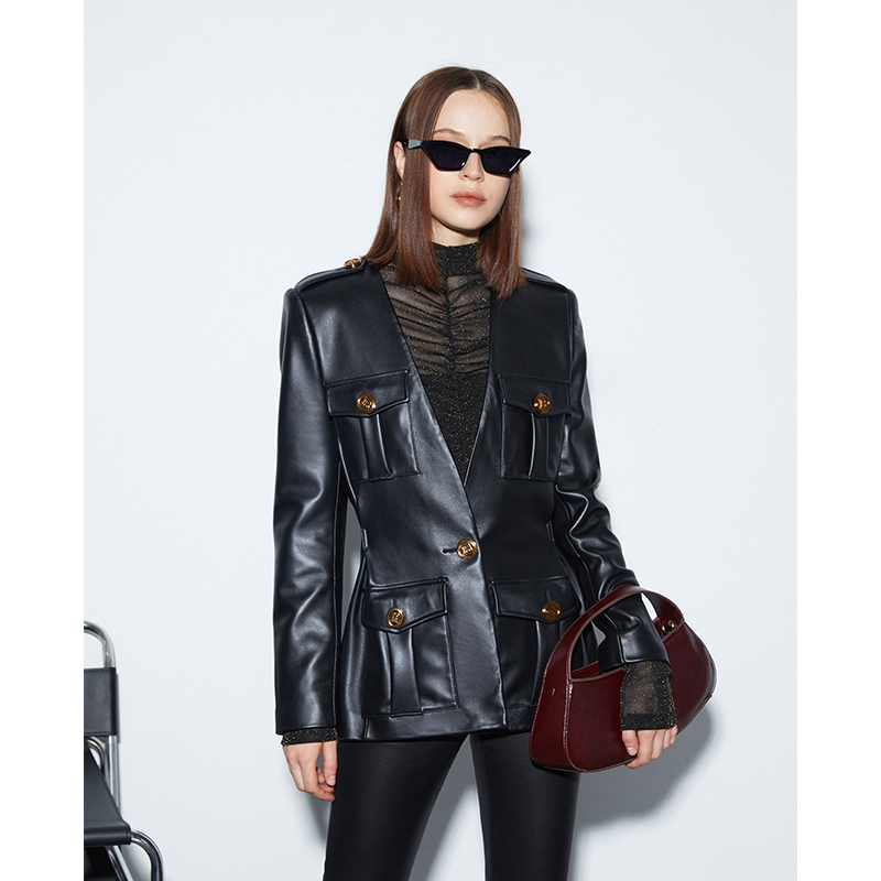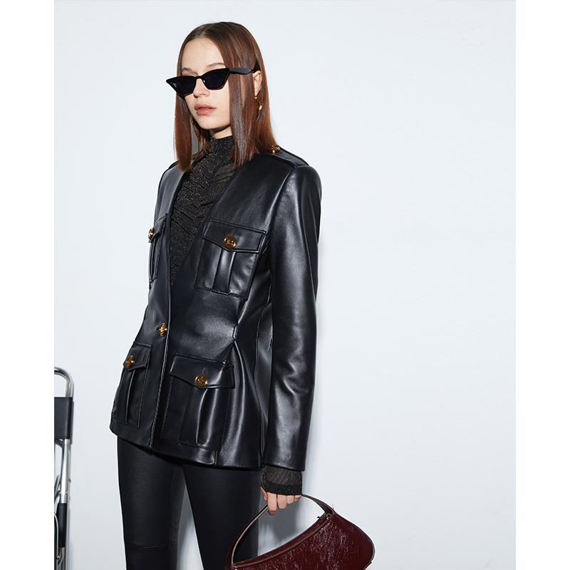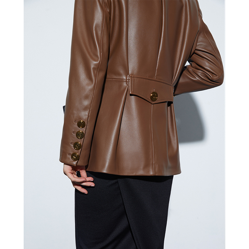 Z Boss Art Class Reworked Garment Leather Coat Minimalist Atmospheric Deep V Styled Western Suit Woman X-shaped Silhouette Sheepskin Woman