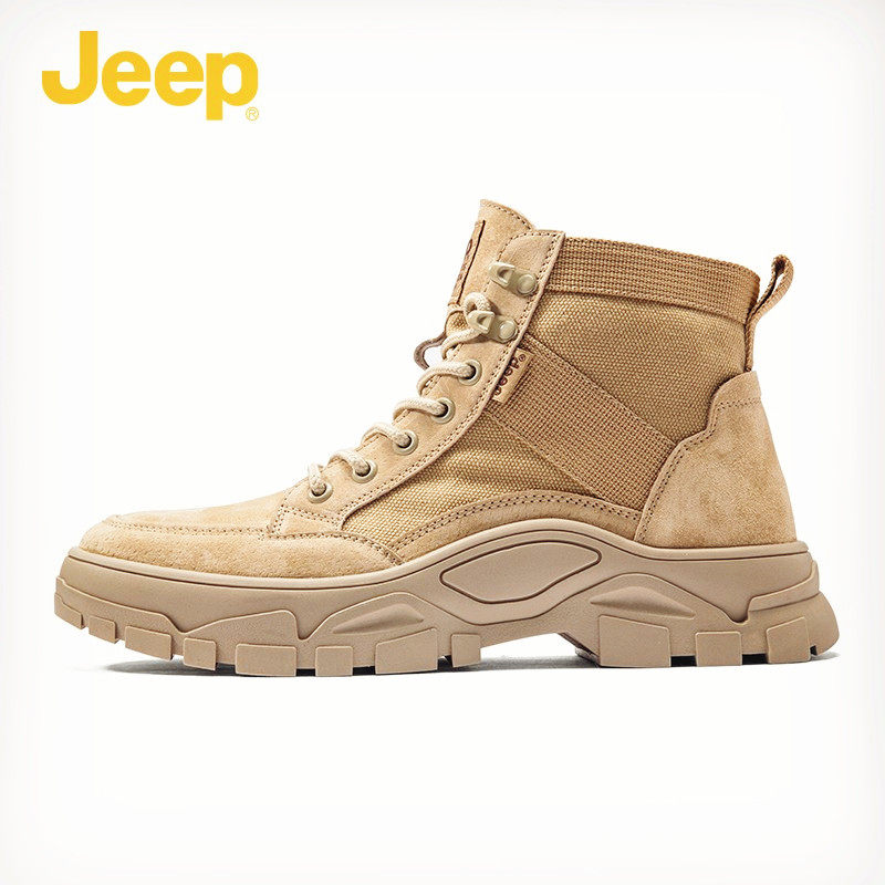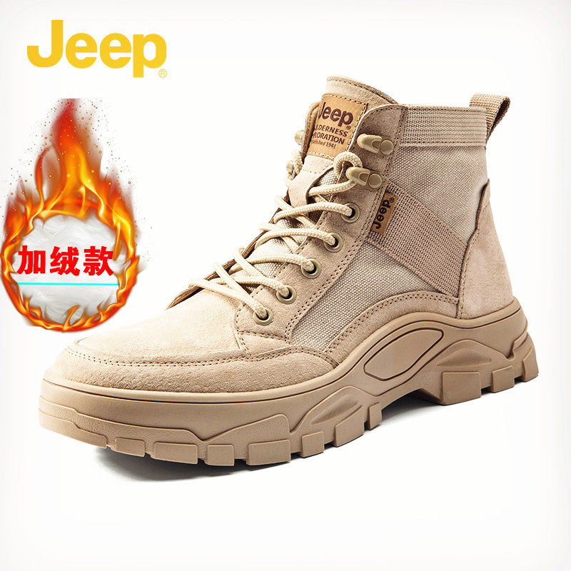 jeep jeep martin boots men's high tube new autumn warm cotton shoes plus velvet tooling shoes leather snow boots