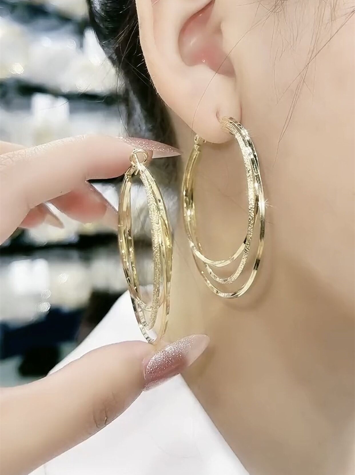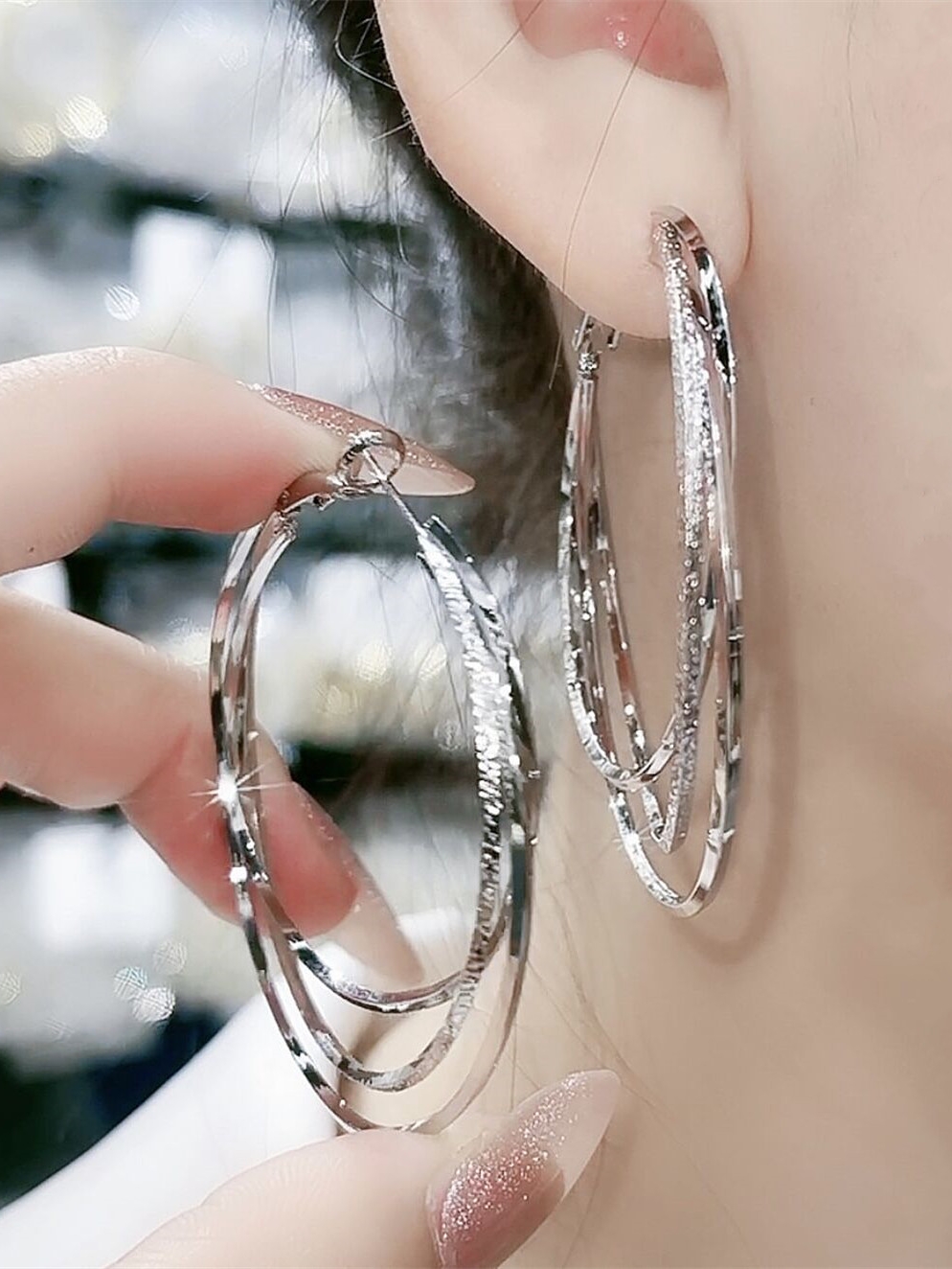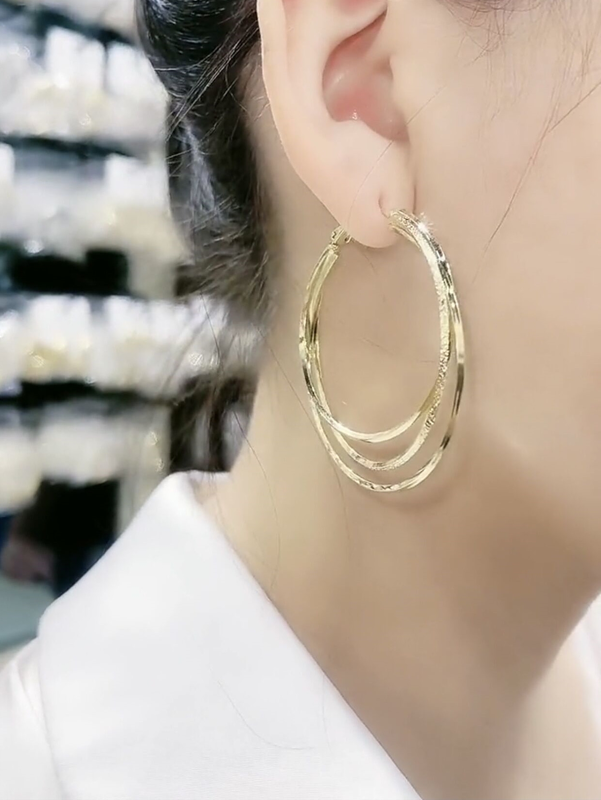 Multi-layer large earrings 2021 new trendy sterling silver needle large hoop earrings European and American style temperament exaggerated face thin earrings