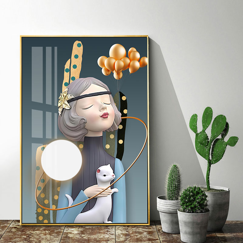 Bedroom headboard decoration painting male and female children's house cartoon Animals wall mural Living room sofa Background wall hanging painting