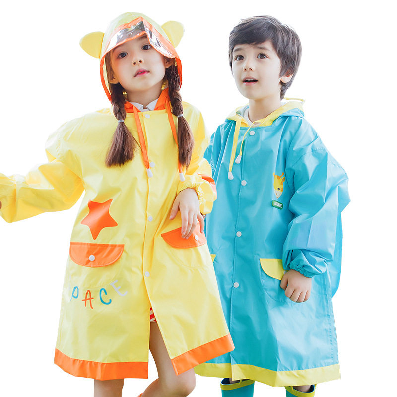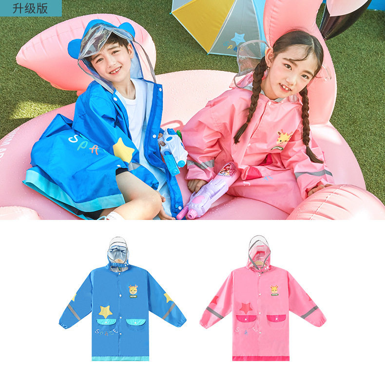 Han Edition Kk Tree Children Raincoat Girl Boy Rain Cape Elementary School Students With School Bag bits Cartoon PVC Anti-leakage transparent cap