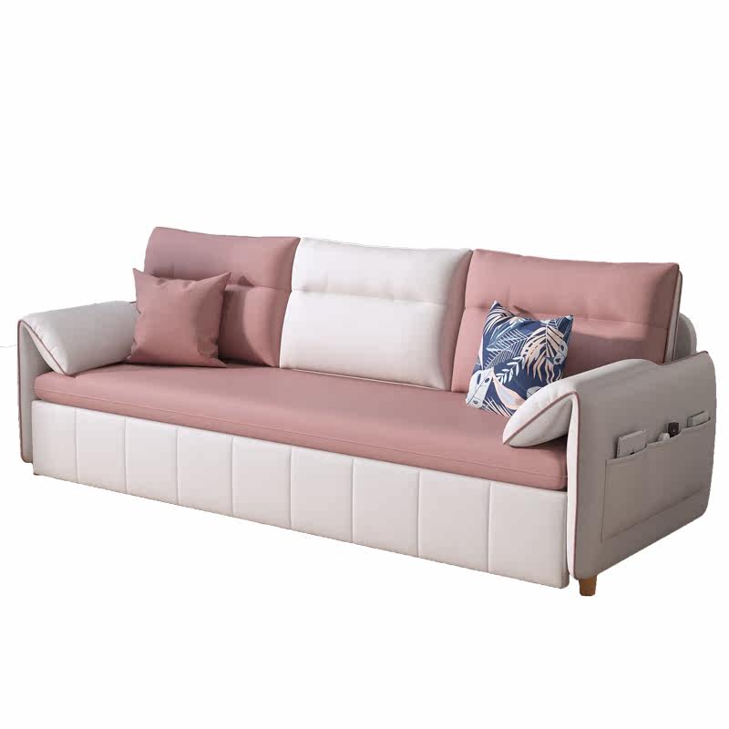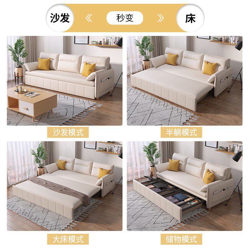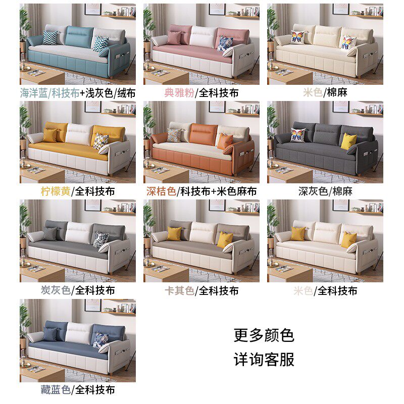Simple modern living room small apartment foldable retractable sponge sofa bed cotton linen waterproof technology cloth solid wood metal