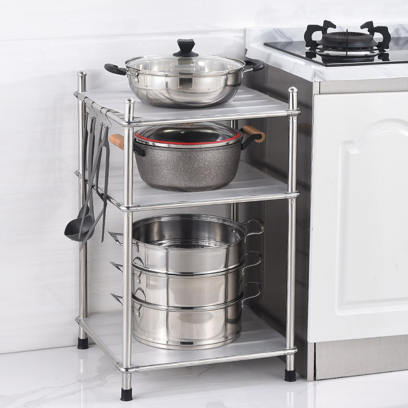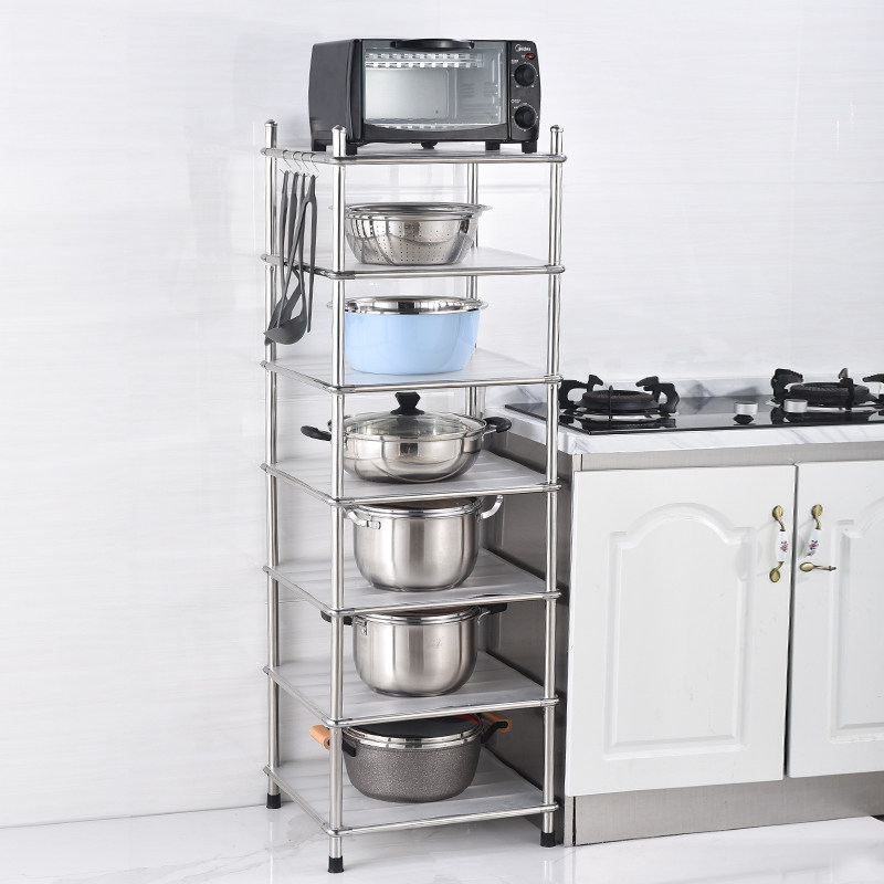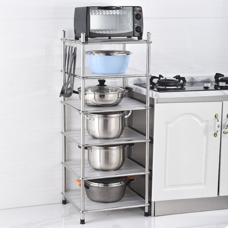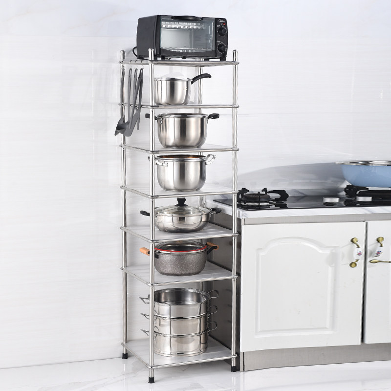 Kitchen rack floor-to-ceiling multi-layer stainless steel storage rack floor-to-ceiling debris storage rack four corners pot rack household