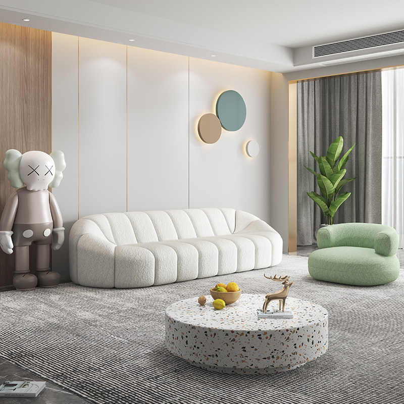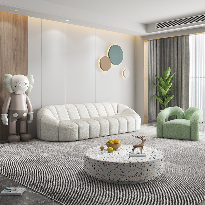 Nordic simple modern Italian pumpkin shaped sofa net red lamb velvet fabric combination three-person small apartment living room
