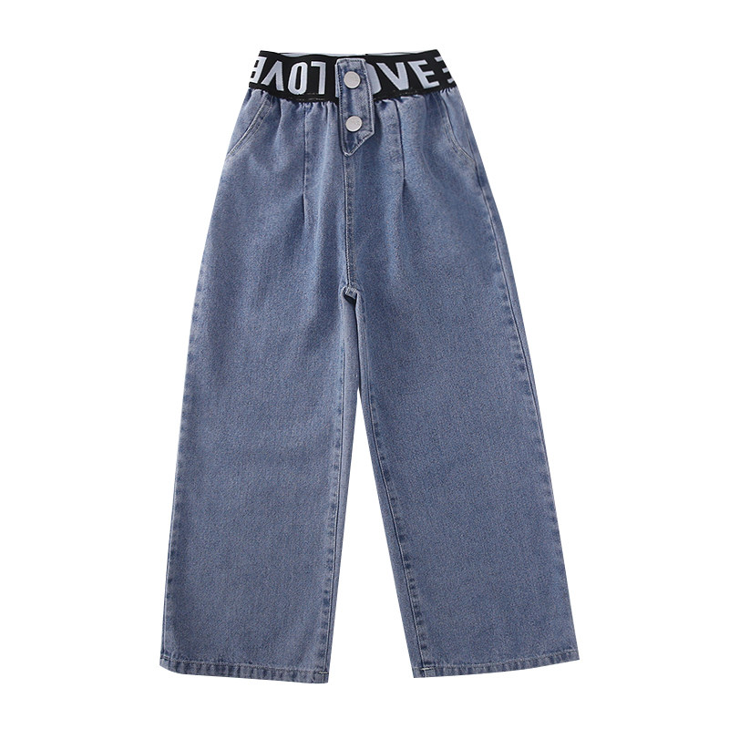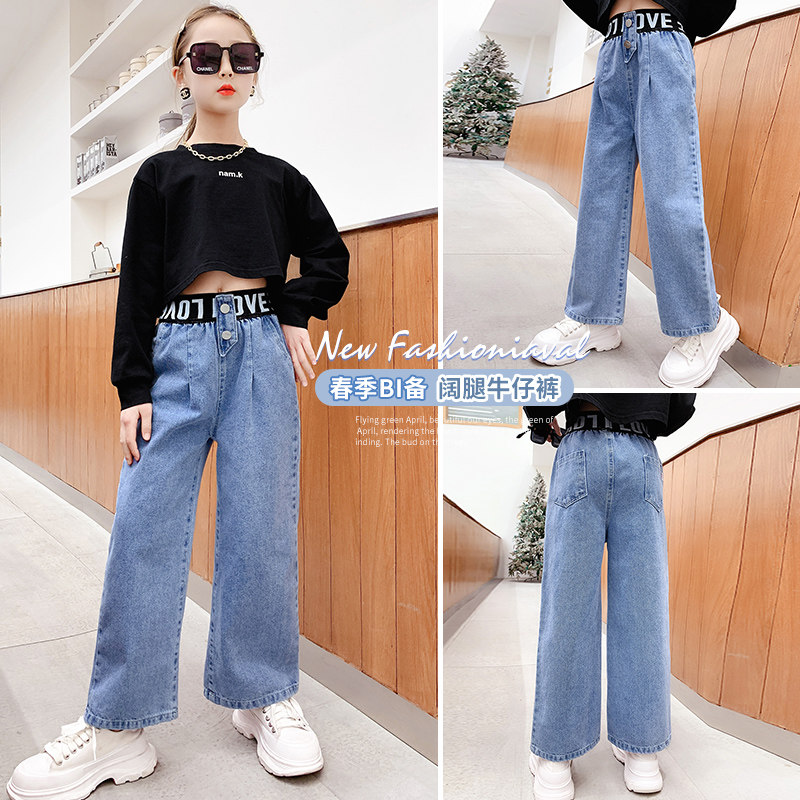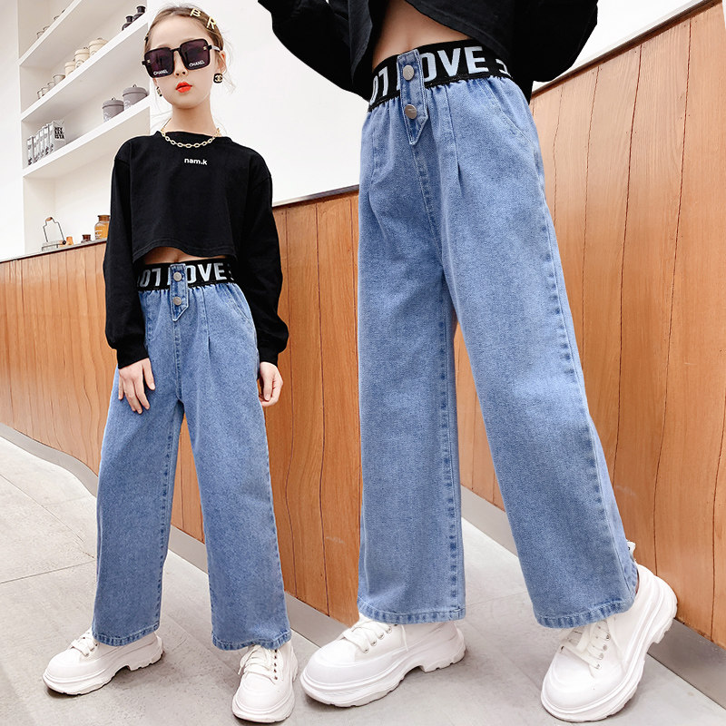 Girls' jeans spring and autumn Korean version of the Western style girl big boy straight wide pants autumn casual loose children's pants