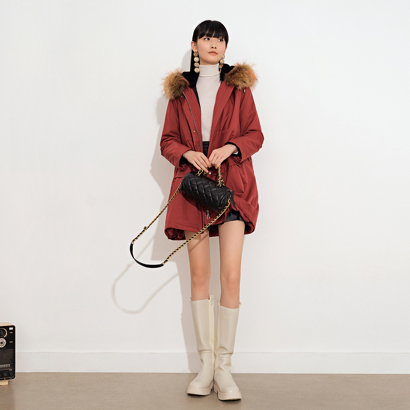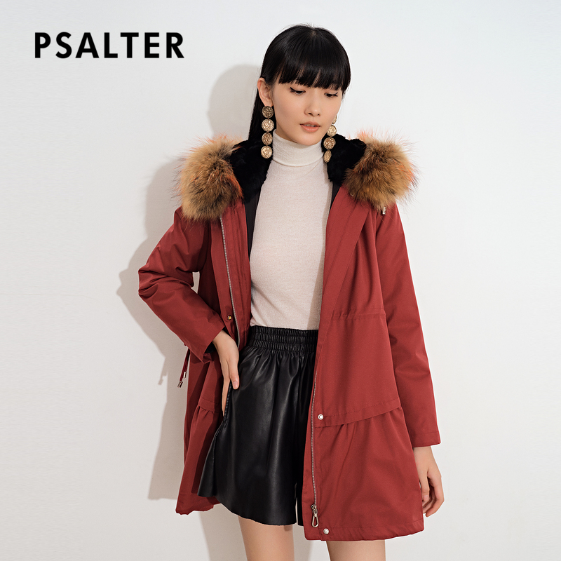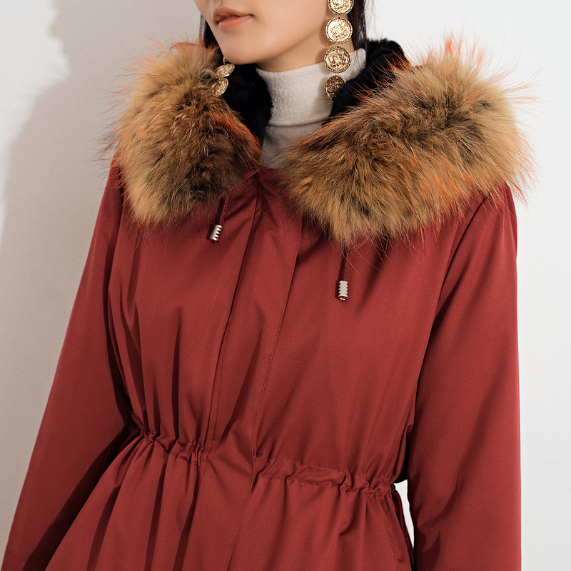 Poetic beauty dress 2021 Winter new rabbit fur liner raccoon fur collar fur collar fur collar
