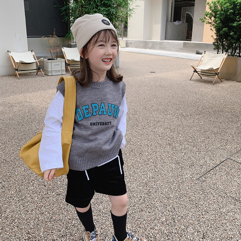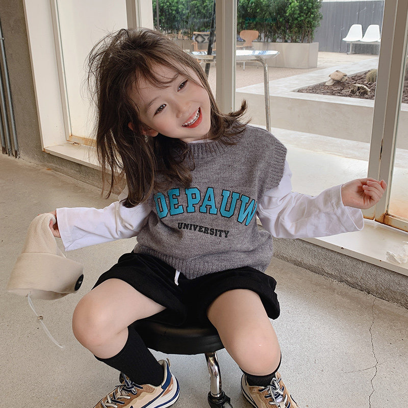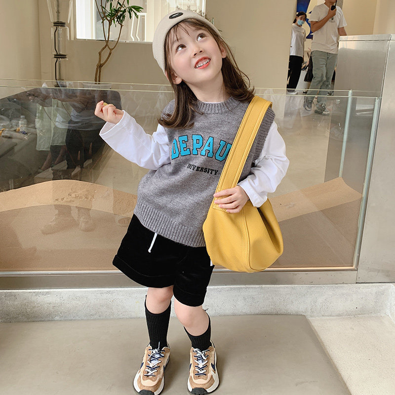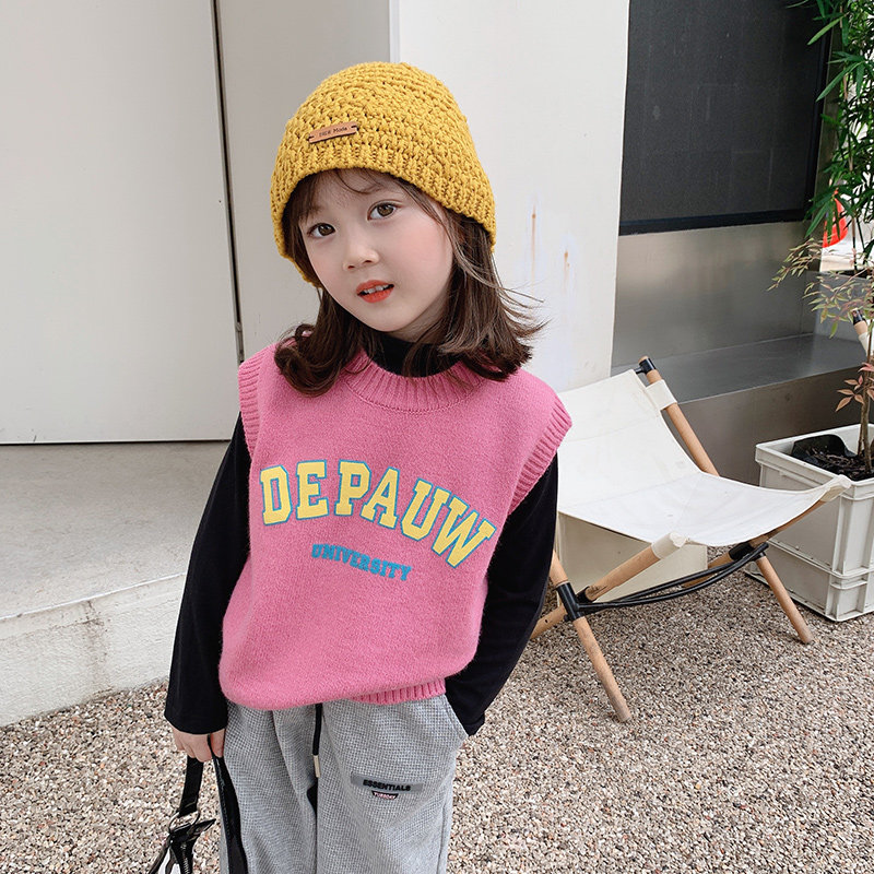 Girl Knit Waistcoat Dress 2022 Spring Dress New Kid Baby Vest Foreign Pie Children Han Edition Spring Sweater