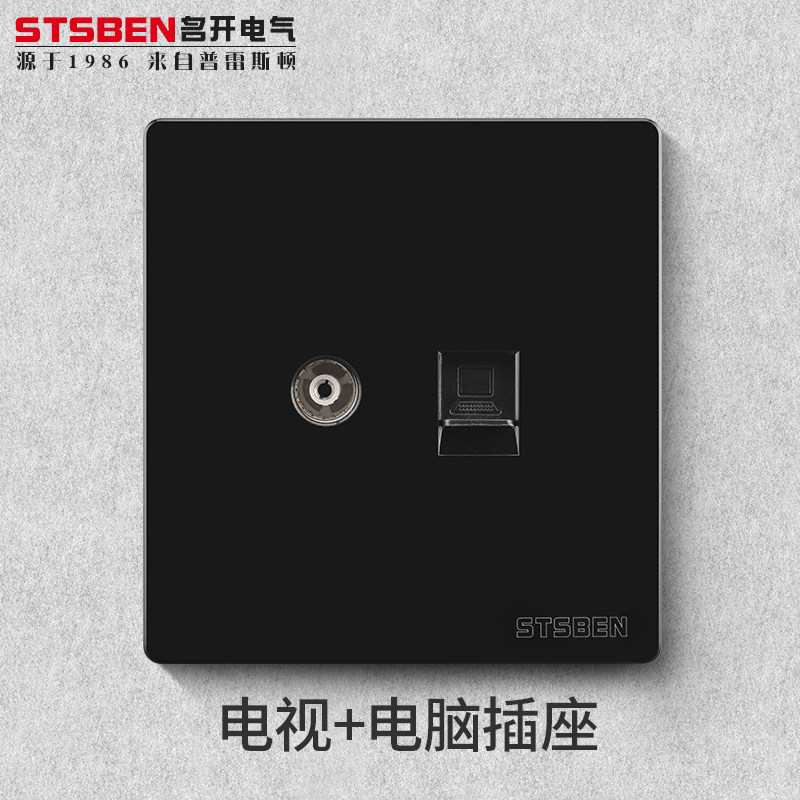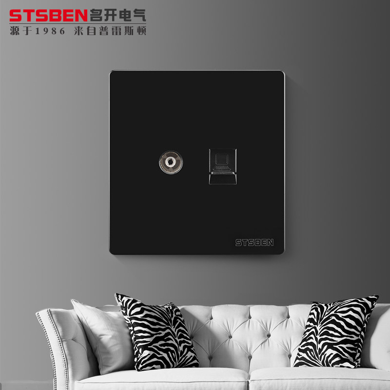 Type 86 wall concealed broadband network information with TV panel black cable TV computer network route socket