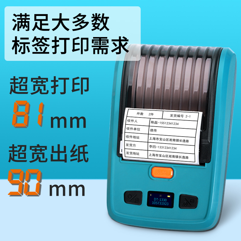 De DT-1330 Portable wide-band heat transfer label printer Hotel Hospital Clothing School Bank Corporate barcode Bluetooth QR code label machine
