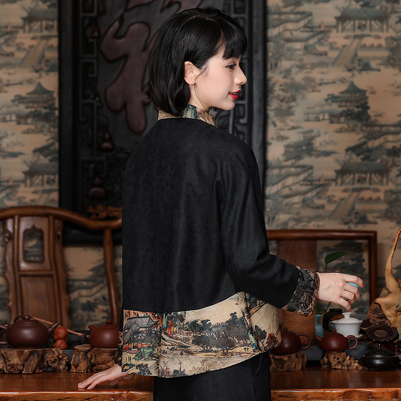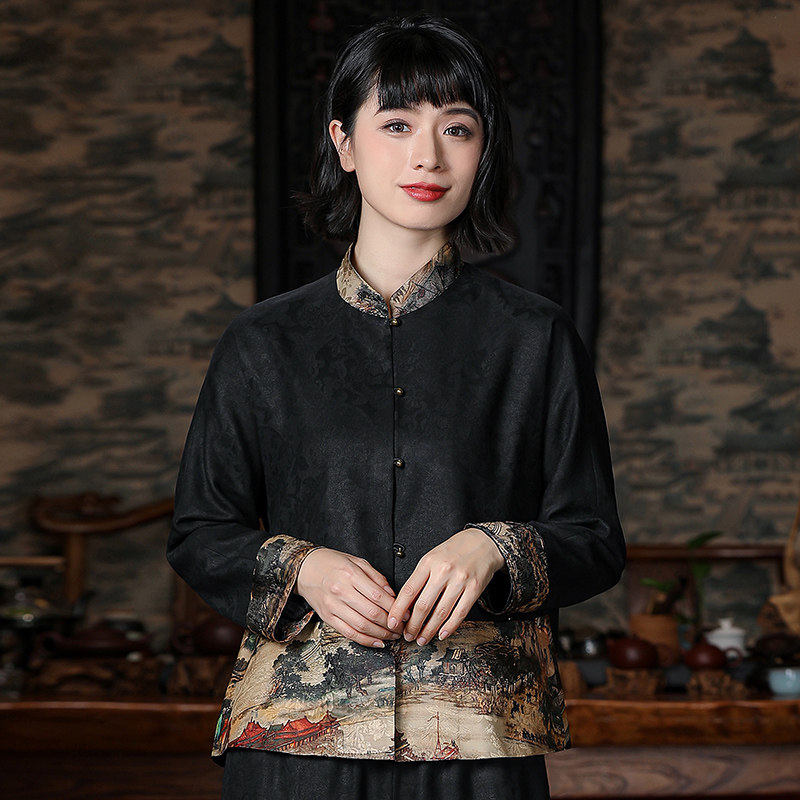 Silk silk spinning corrugated clouds on coat sand silk tissue piece retro-clad Tang dress relaxed long sleeve coat
