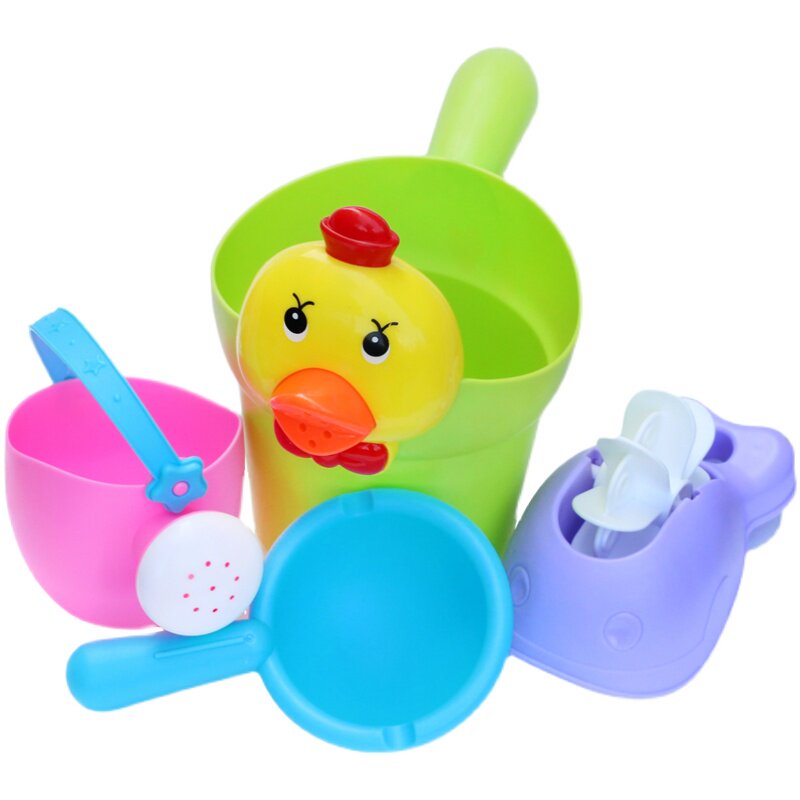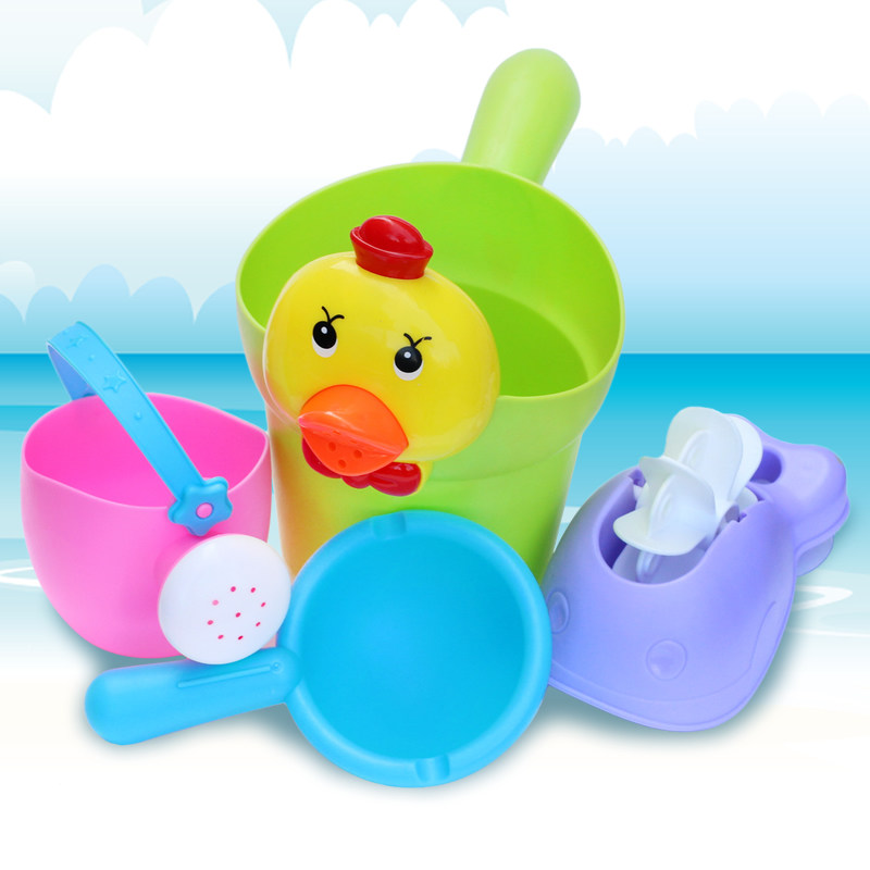Children's bath toys soft rubber cartoon duck bucket turn water truck watering kettle water scoop baby playing with water