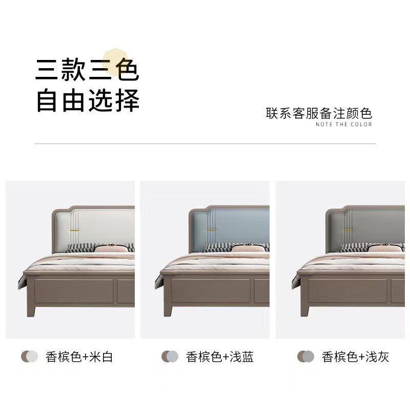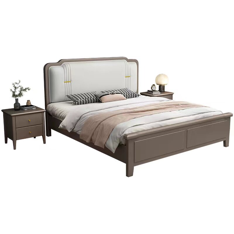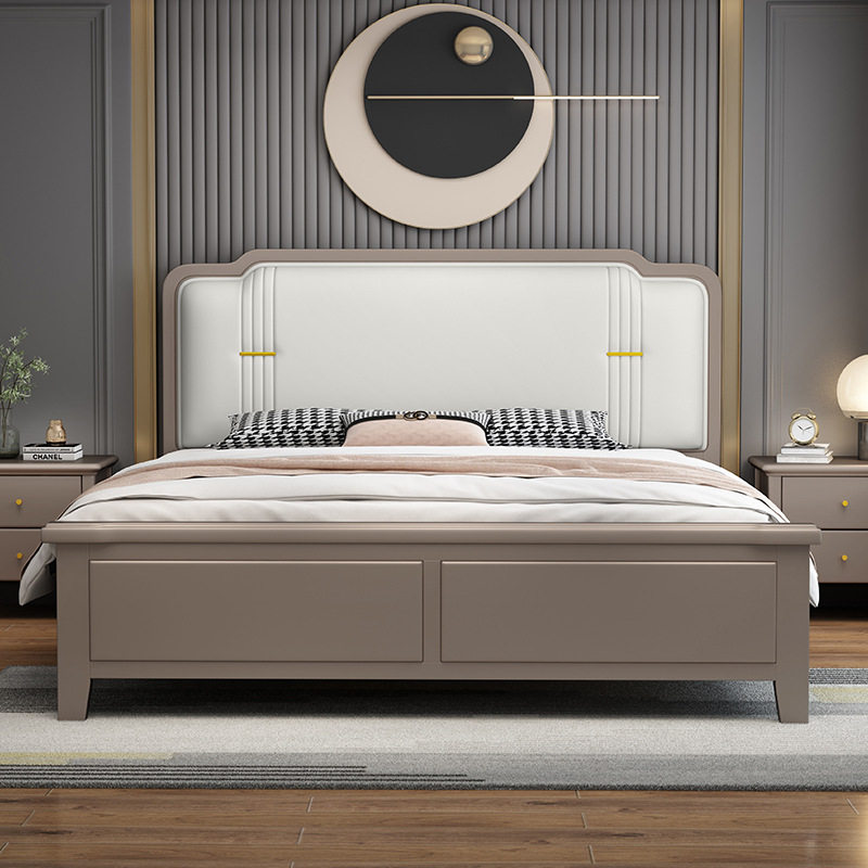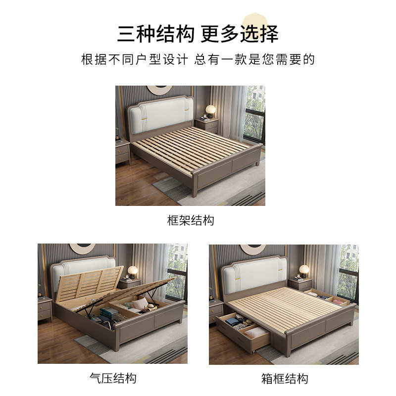 American light luxury solid wood bed modern simplicity 1 5 meters double master bedroom king bed 1 8 European style soft back high box storage bed