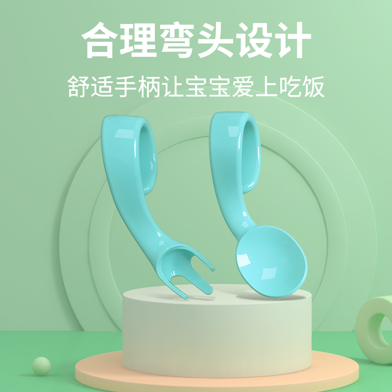 Baby spoon learning to train bending learning to eat a one-year-old short handle elbow and feeding spoon baby tableware kit