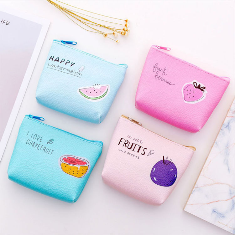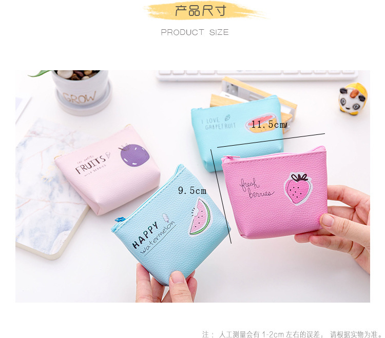 Korean version ins girl heart strawberry coin purse cartoon fashion leather mini wallet coin bag zipper coin bag