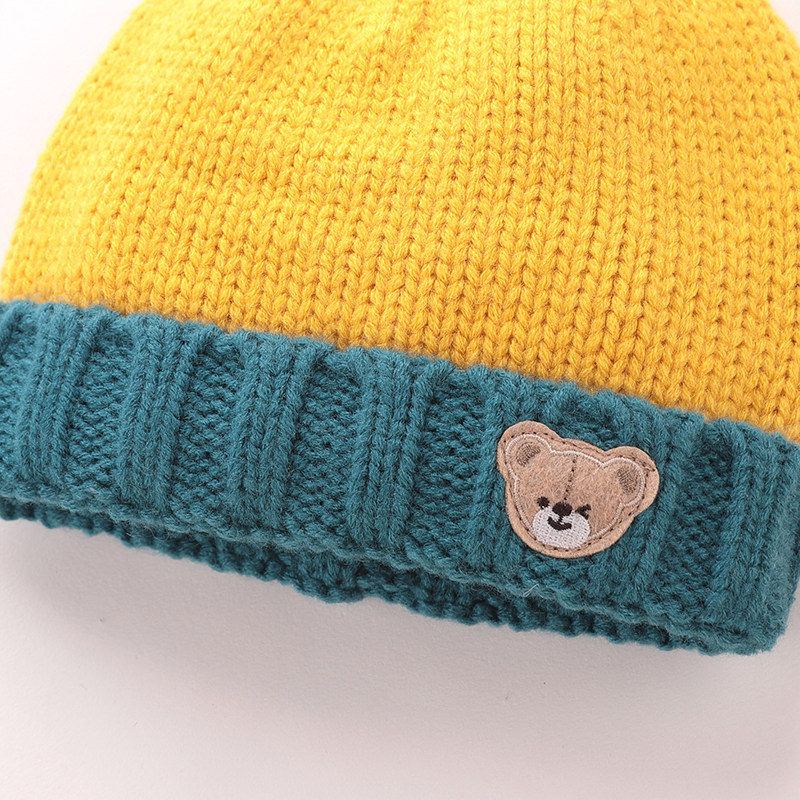Splicing color cotton beanie-yellow splicing color cotton beanie-dark blue