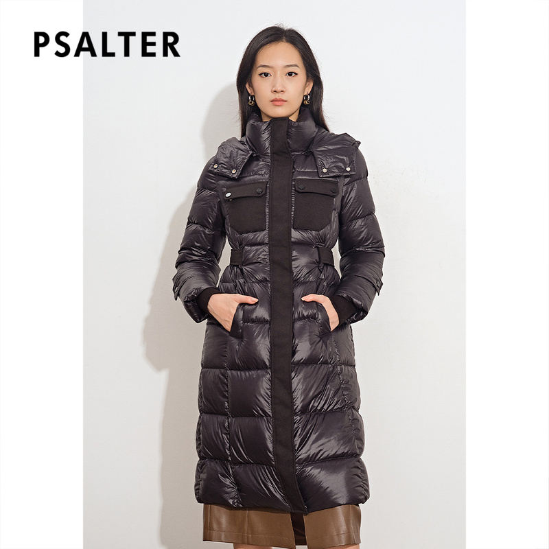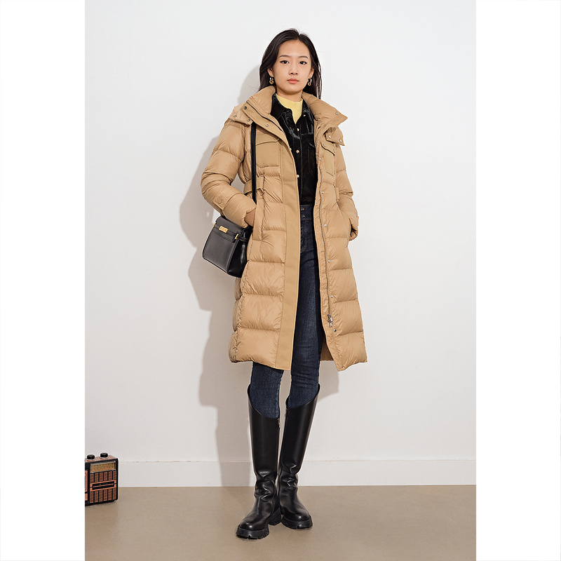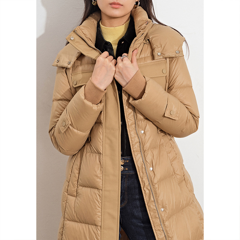 Poetic beauty dress 2021 Winter new medium long version collection waist white duck suede Even cap down jacket woman