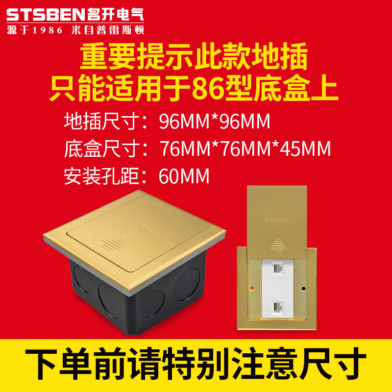 Type 86 flat push full copper floor plug-in waterproof double mouth Internet floor insert slip cover type two computer network route copper ground plug