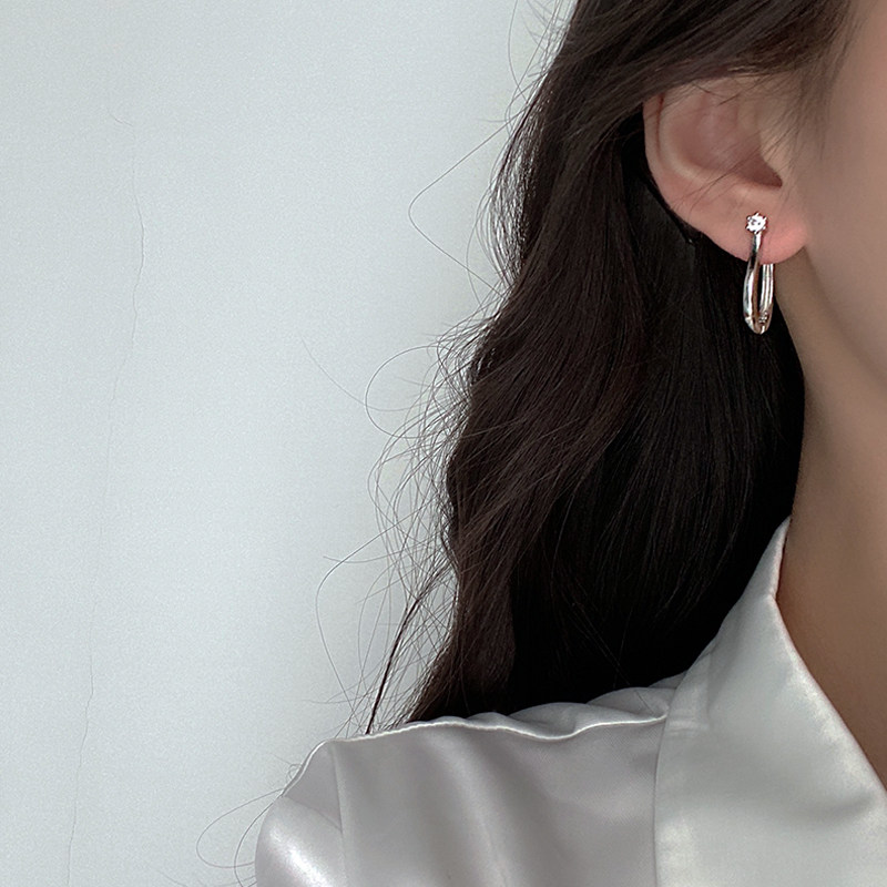 Small crowd not hit with a large ear coved-ear button original design 925 pure silver minimalist with diamond with personality earrings earrings