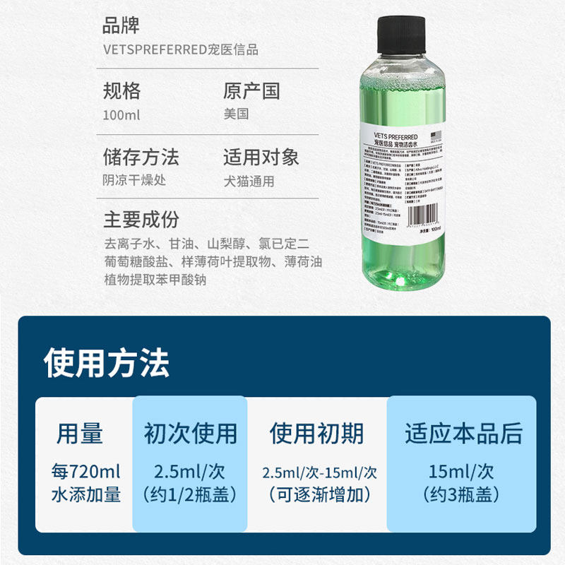 (100ml) US Pamper Pamper Pet Mouthwash Kitty Dog Deodorant with Edible Teeth Water Clean