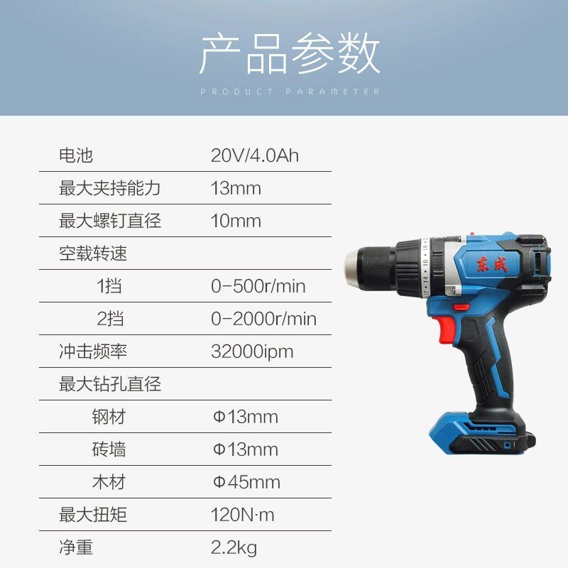 Dongcheng brushless 20V shock drilling lithium electric drill rechargeable flashlight DCJZ03-13 multifunction high-power electric drill