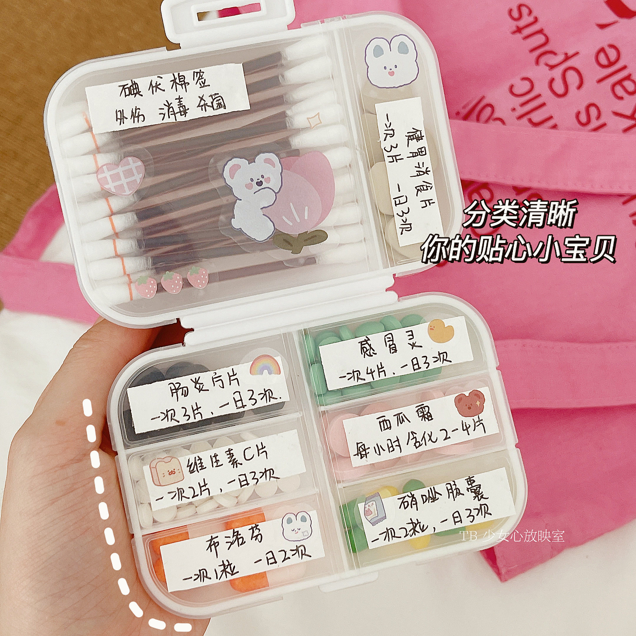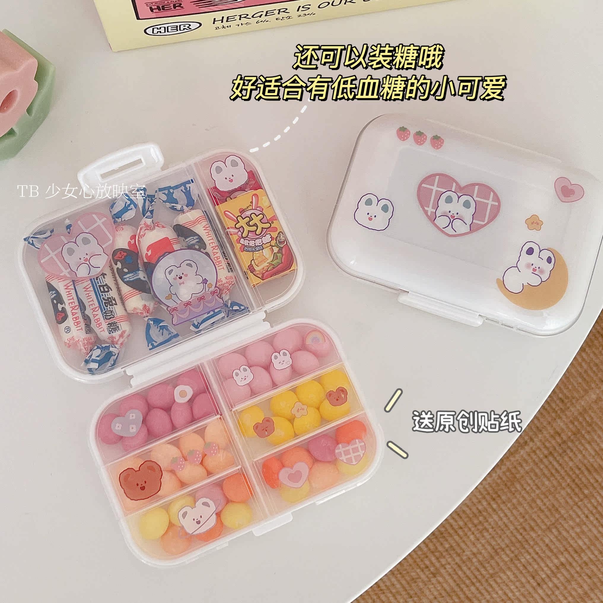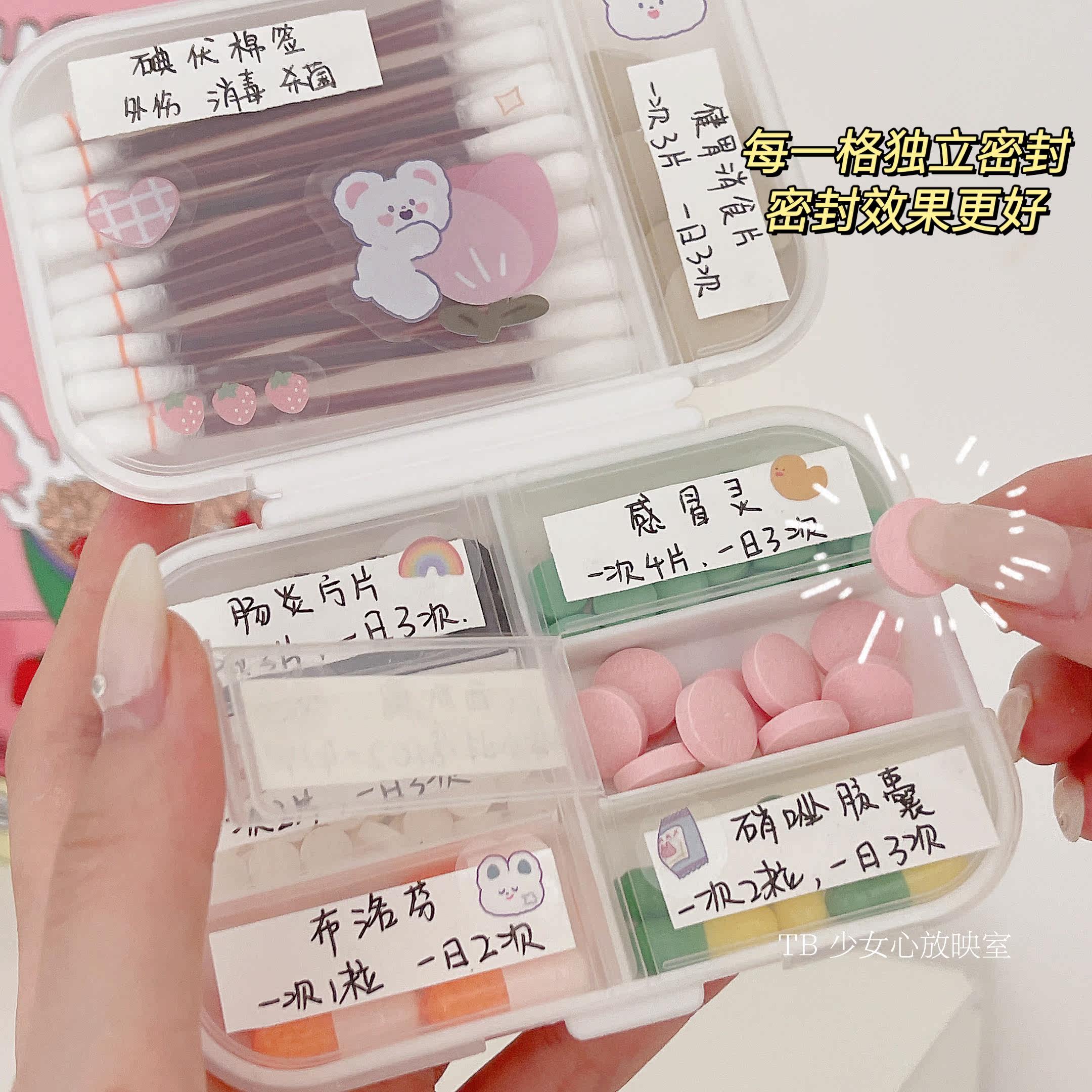The box where the pills are placed, the girl's heart screening room, the portable carry-on medicine box, and the storage of pills in the morning and evening for 7 days