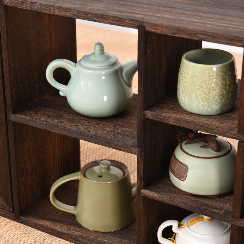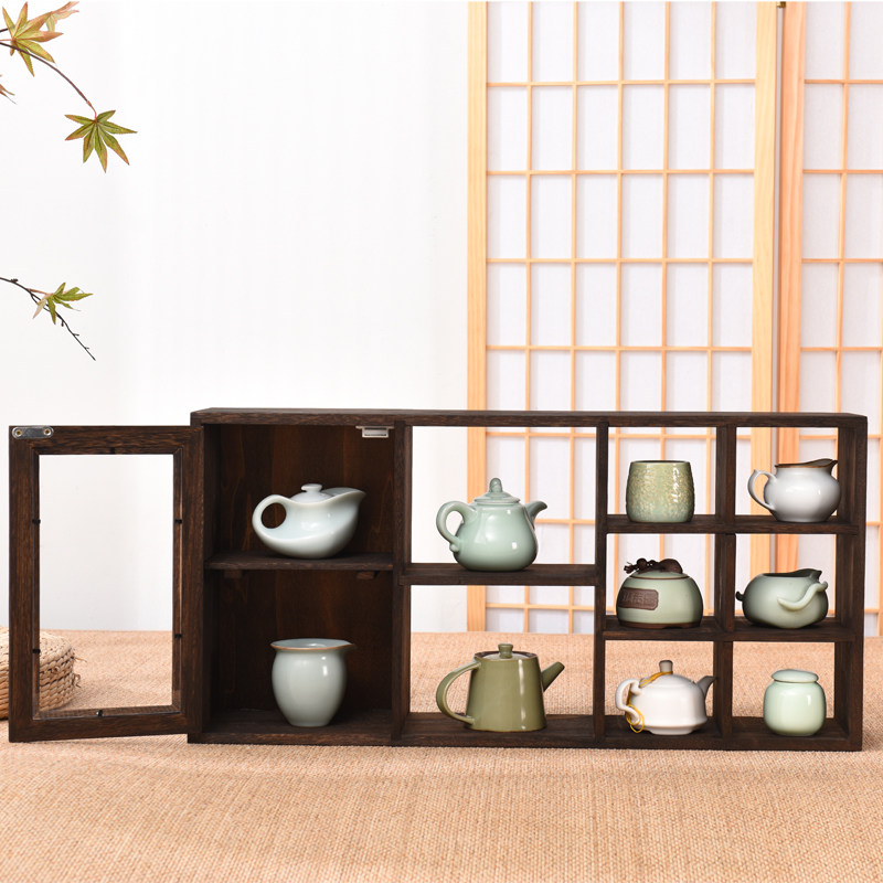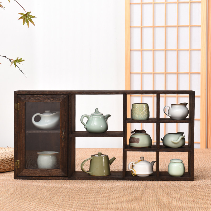 Solid wood desktop storage cabinet Chinese wall-mounted bogus shelf tea scaffolding Shelve Teapot Cup mat Multi-Bag