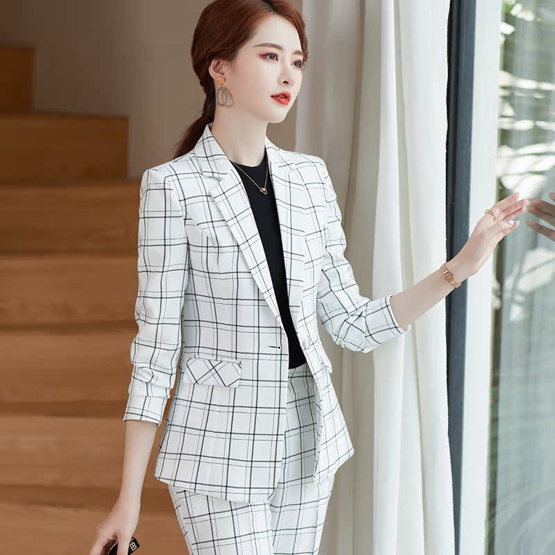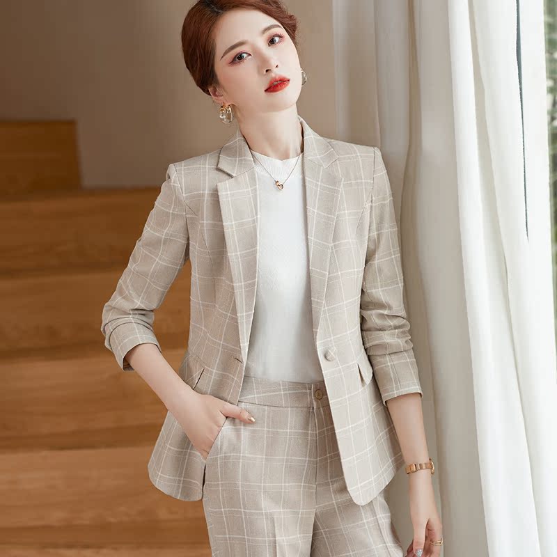 Plaid Small Suit Suit Lady Fall Fashion Korean Version Goddess Van Casual Great Size Blouse Coat Professional West Suit Jacket