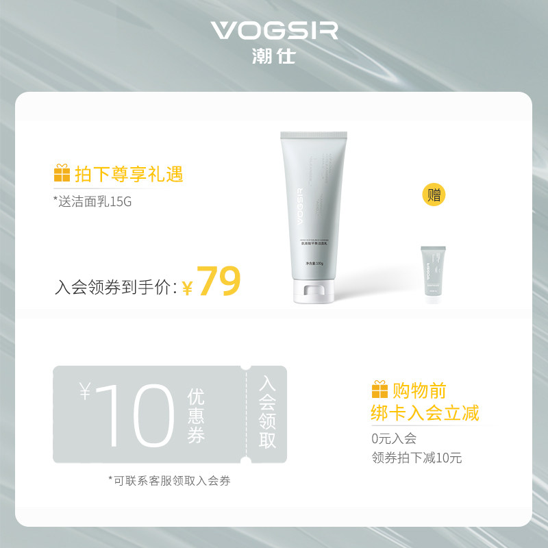 VOGSIR Chaoshi Men's special amino acid wash-face milk moisturizing and moisturizing deep cleaning gentle and oil-controlled surface milk