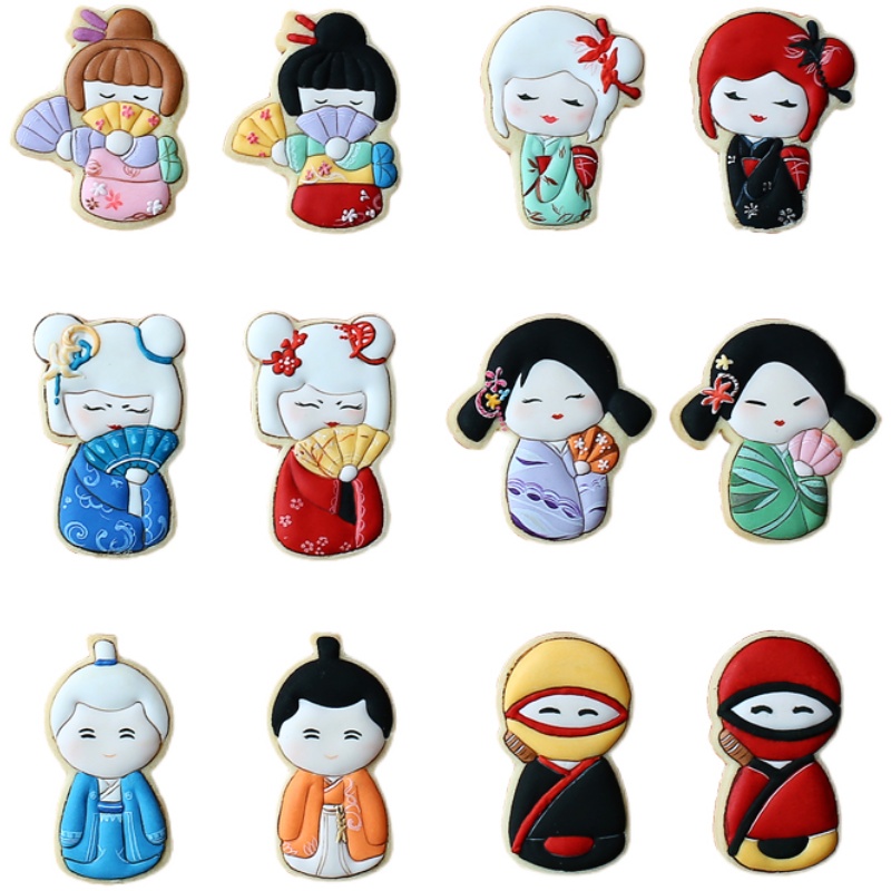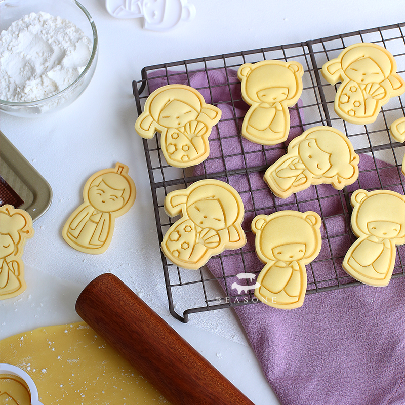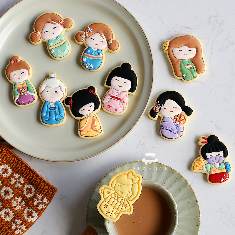 Japanese cartoon kimono doll cute icing biscuit hand-painted DIY puppet biscuit mold steamed bread cutting tool