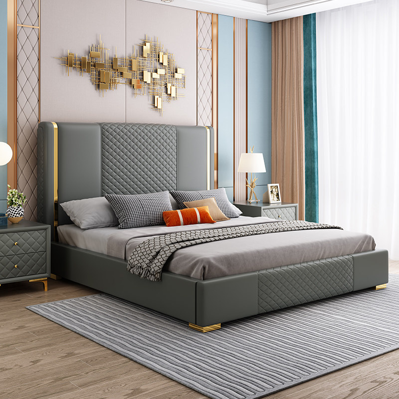 Modern light extravagant bed genuine leather bed Italian style extremely minimalist master bedroom 1 8 double wedding bed minimalist small family type soft bag mesh red bed