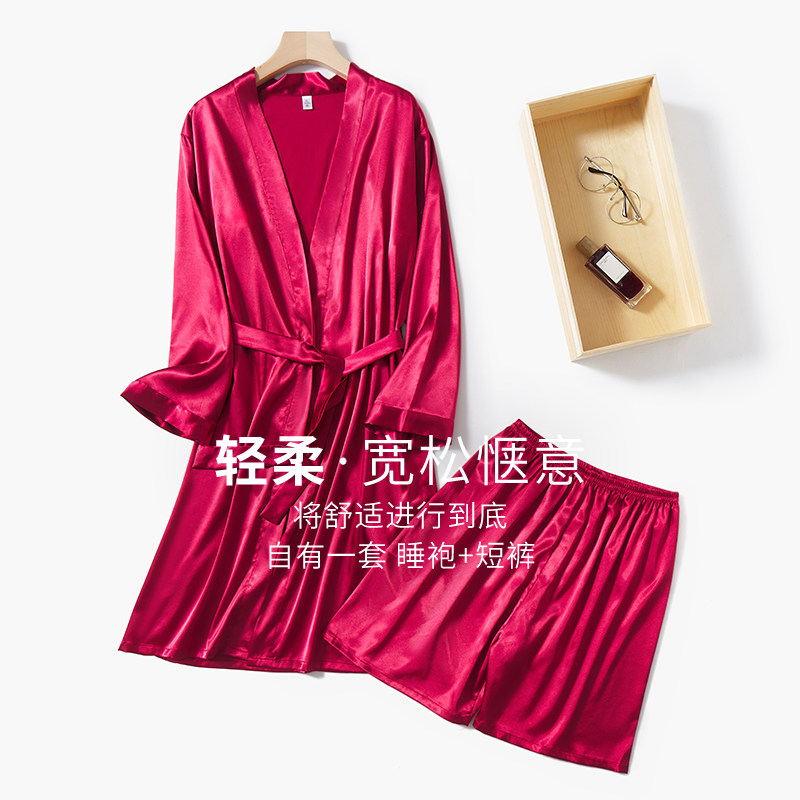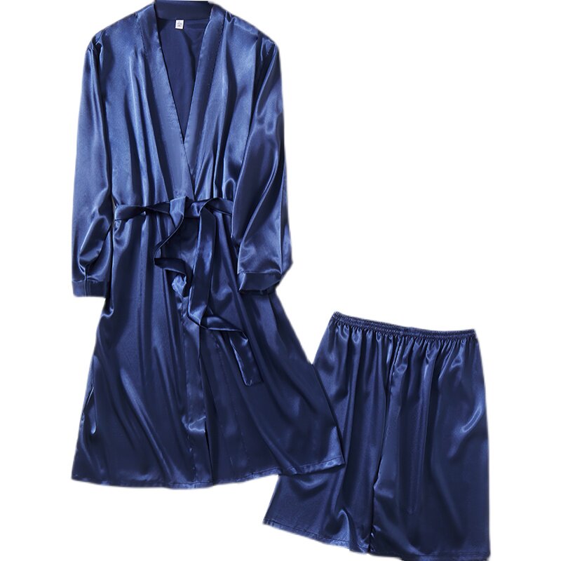 Sleepwear Male Ice Silk Senior Sense Pyjamas 2021 Spring Autumn New Emulation Silk Bathrobe Suit Men's Home Clothing