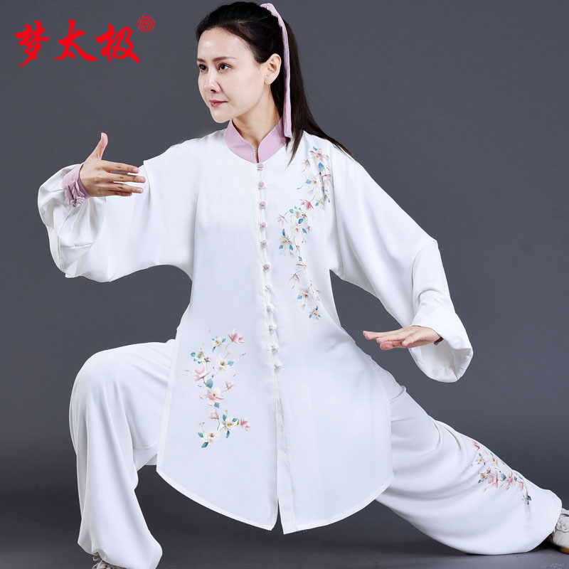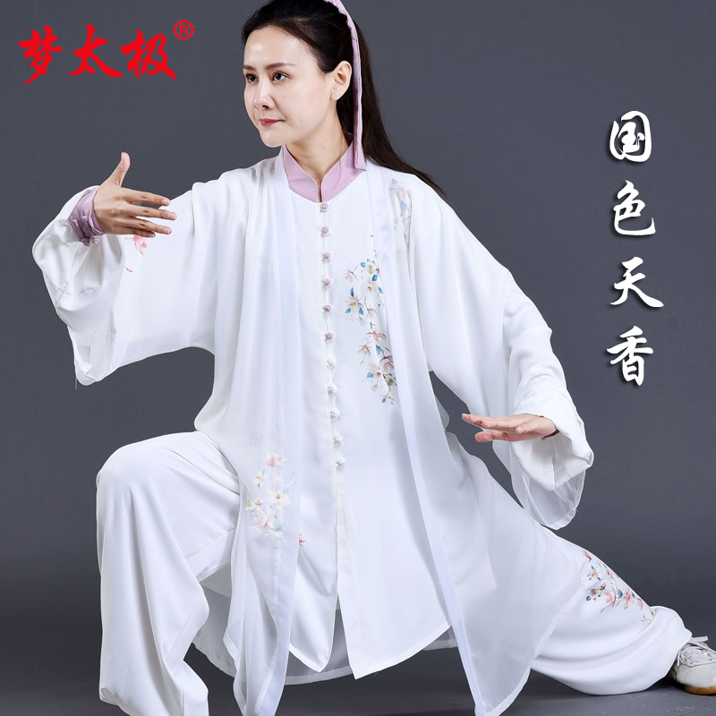 Dream Tai Chi's new printed performance clothing three-piece spring and summer pearl silk Tai Chi clothing women's high-end elegant Tai Chi clothing