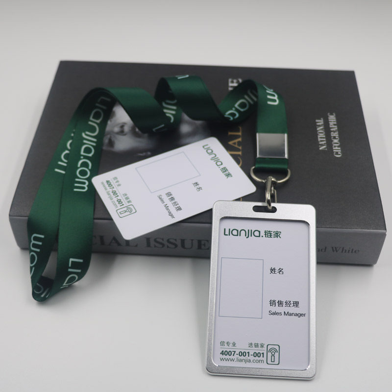Lianjia real estate work certificate work card tag Custom Lianjia real estate PVC portrait card lanyard aluminum alloy card set