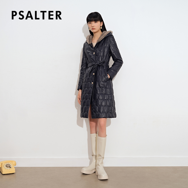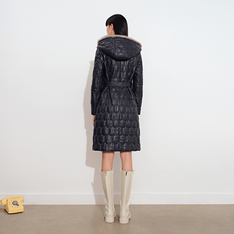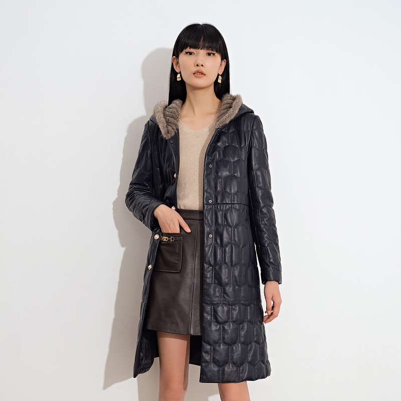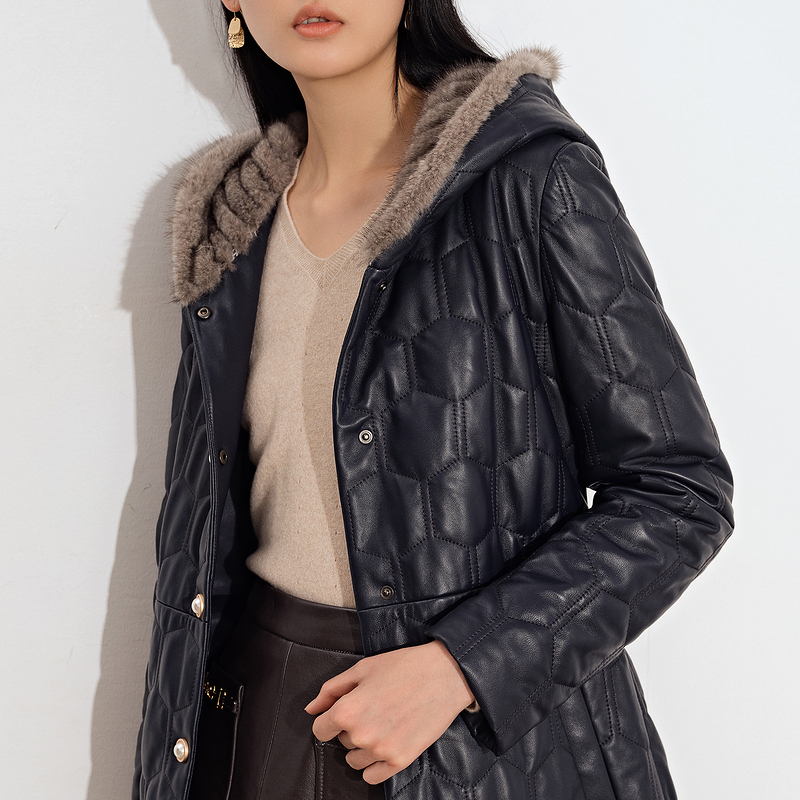 (Cold Wave) Poetry Women Dress 2021 Winter New Temperament mink fur Lianhood Long version of leather clothing