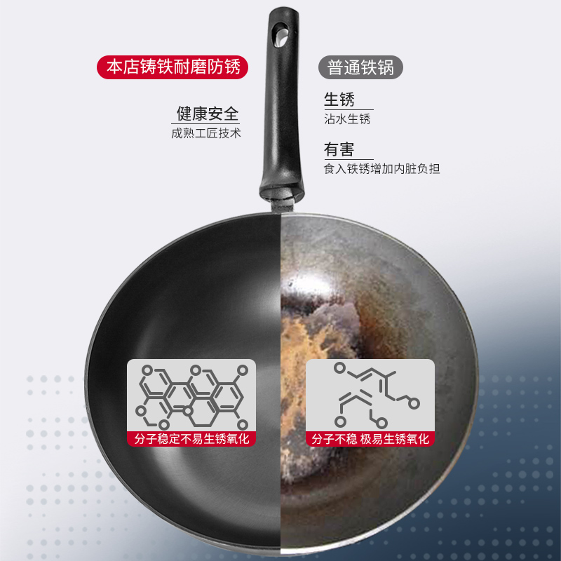 Old fashioned round bottom frying pan cast iron frying pan Home flat bottom thickened No-coating gas furnace suitable for induction cooktop