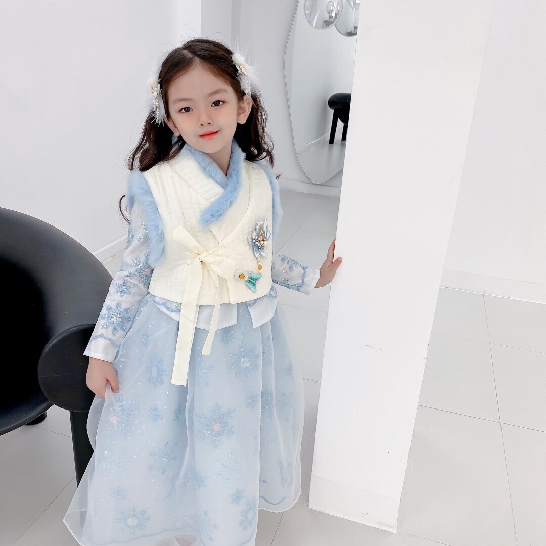 Light blue top vest skirt two-piece set light blue top suspender skirt vest three-piece light blue top suspender skirt two-piece vest brooch hair band (not set)