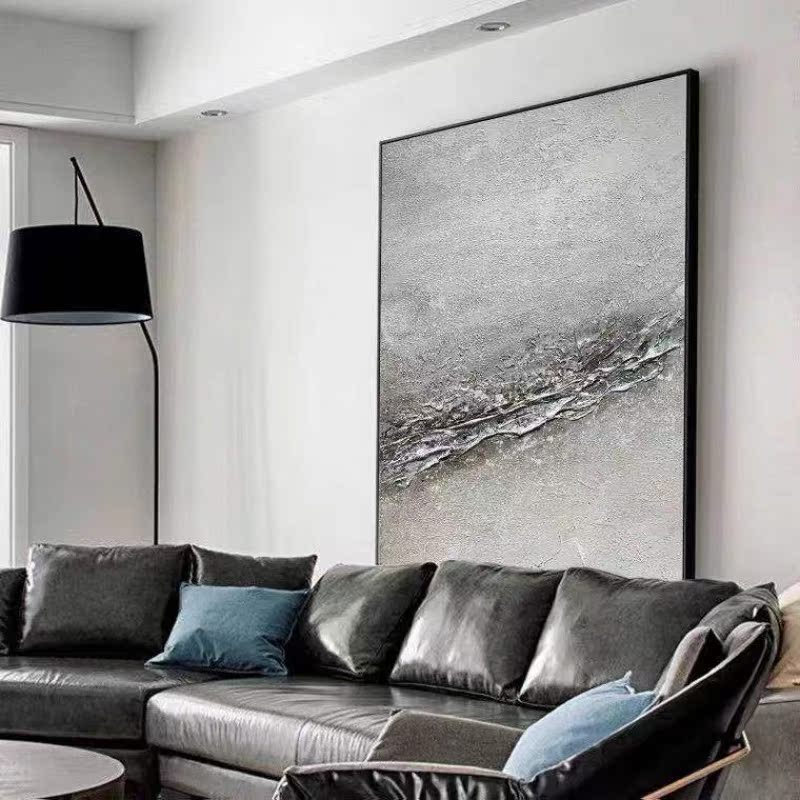 Hand-painted oil painting large landing light luxury thick texture porch decorative painting abstract modern black and white gray wabi sabi wind hanging painting