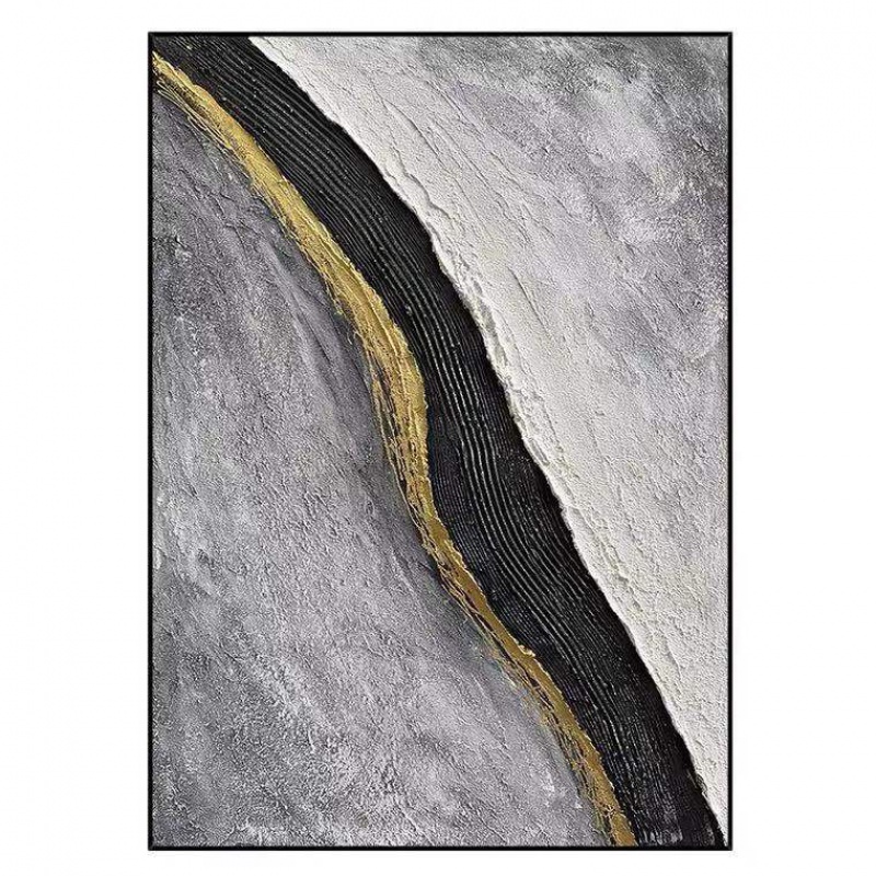Hand-painted oil painting large landing Nordic light luxury porch black and white gray three-dimensional decorative painting modern minimalist abstract hanging painting