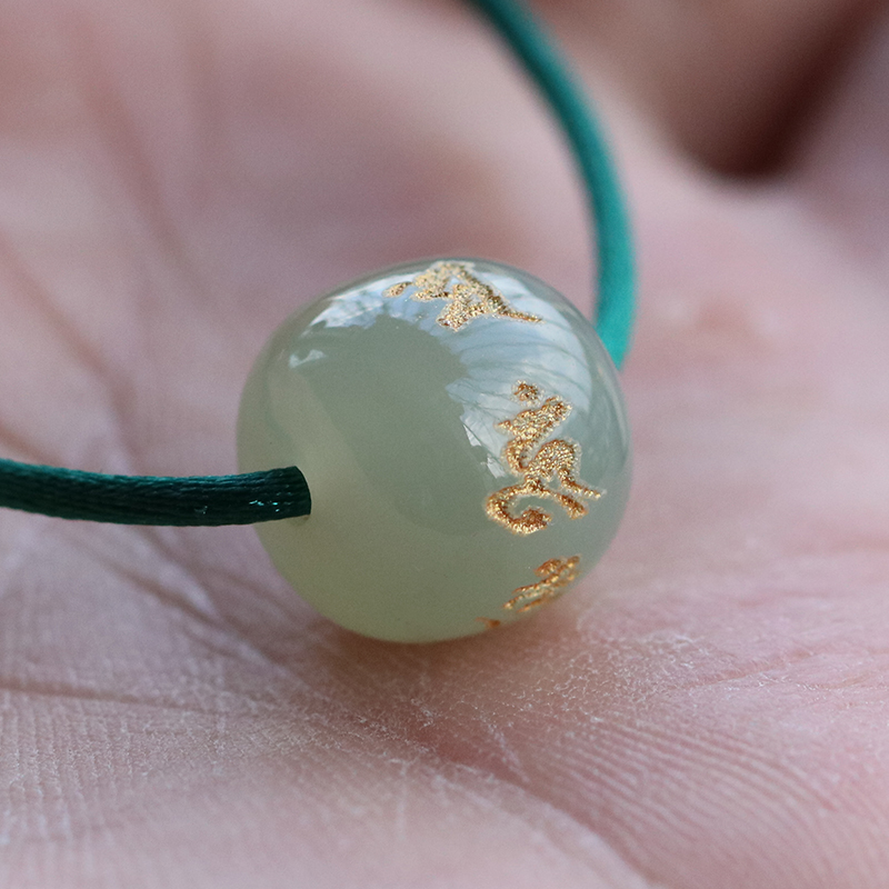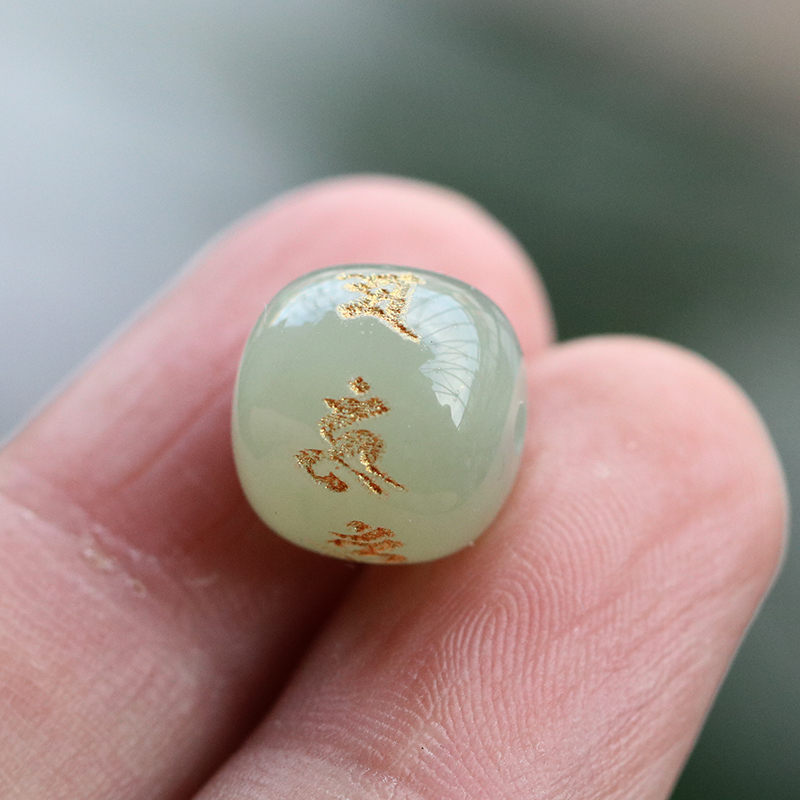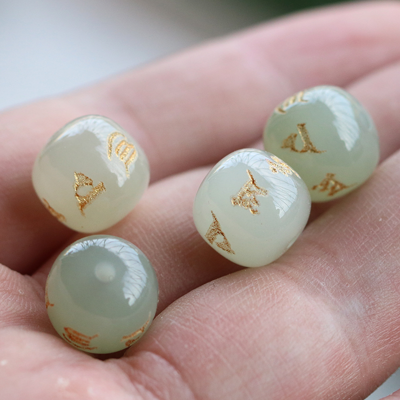 Natural Hetian jade six-character mantra barrel bead road Lutong transfer pearl clear water old-fashioned loose beads diy bead string with beads